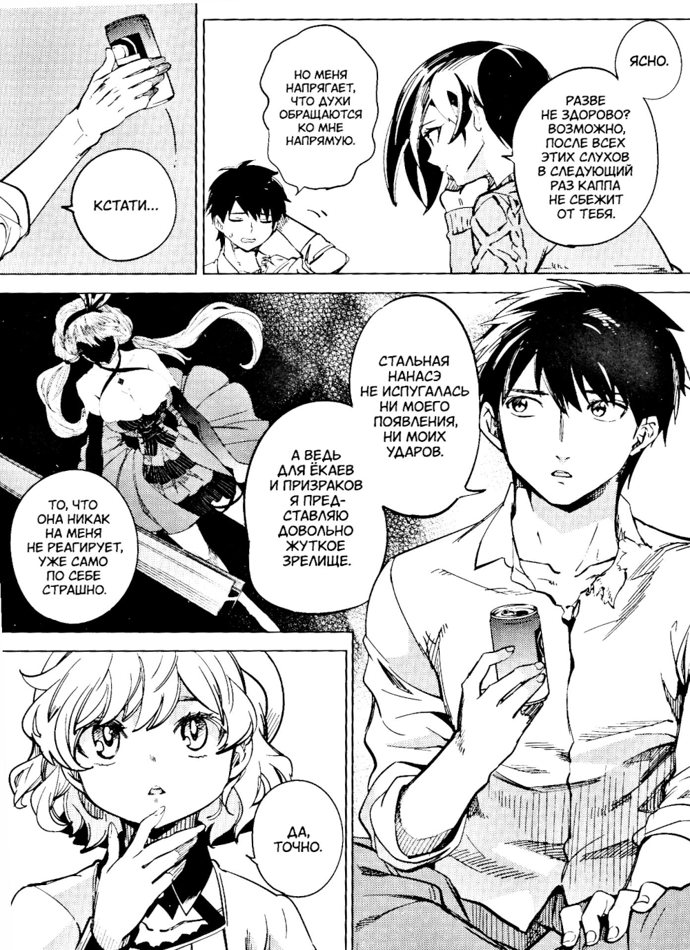 Божество мудрости Иванага Котоко, Сакурагава Куро, наделённый способностями двух ёкаев, а также его бывшая девушка, офицер полиции Юмихара Саки, - наконец-то трио героев собралось в Макурадзаке! Стальная Нанасэ не подчиняется законам природы: сломанная шея не остановила её. Кто же она на самом деле и как с ней справиться? Может быть, она - просто орудие в чьих-то руках? Используя полицейские отчёты и показания призраков, Котоко разворачивает в интернете кампанию, намереваясь доказать, что Стальной Нанасэ вовсе не существует. Только вот неизвестно, согласятся ли с ней посетители сайта, посвящённого этой городской легенде, особенно после убийства, всколыхнувшего весь город.| Издательство | Изд. Фантастика Книжный Клуб |