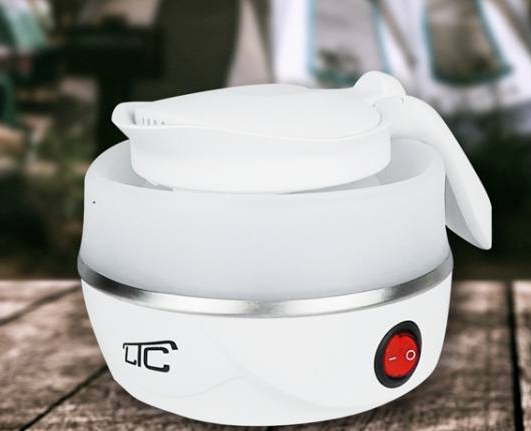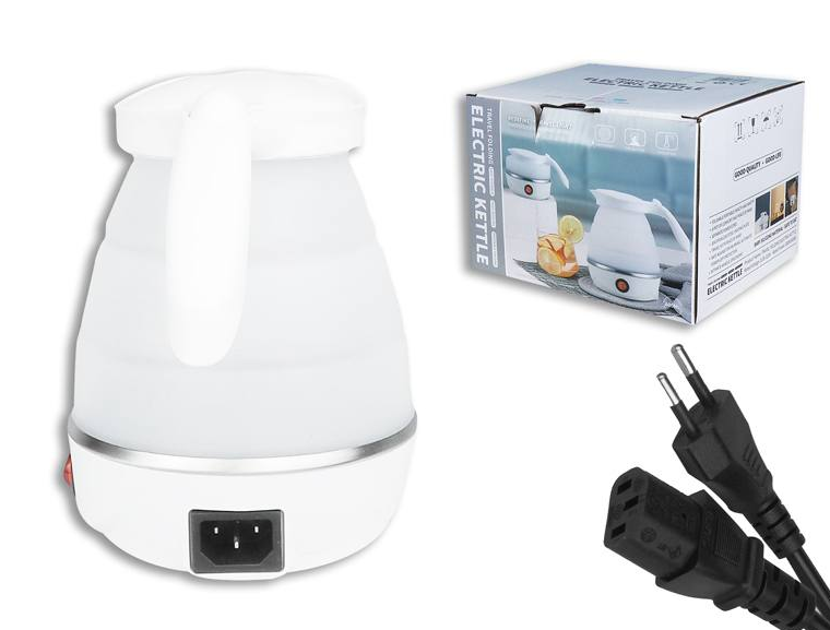 Размер этого складного мини-электрического чайника составляет всего 9 см в сложенном виде и 13 см в разложенном . Емкость 600 мл . Наш электрочайник очень удобен и легок в путешествии.