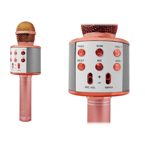 ПРИВЛЕКАТЕЛЬНЫЙ ВНЕШНИЙ ВИД - блестящий, металлический цвет всегда очень актуален. Эффектный дизайн дополняет едва уловимая подсветка динамиков, которые при включении светятся голубым цветом. На выбор доступны 4 цветовые версии микрофонов - черный, серебристый, светло-розовый и розовый. Это отличная идея для подарка, независимо от возраста.