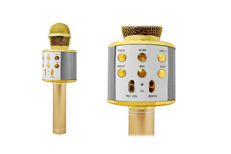 ПРИВЛЕКАТЕЛЬНЫЙ ВНЕШНИЙ ВИД - блестящий, металлический цвет всегда очень актуален. Эффектный дизайн дополняет едва уловимая подсветка динамиков, которые при включении светятся голубым цветом. На выбор доступны 4 цветовые версии микрофонов - черный, серебристый, светло-розовый и розовый. Это отличная идея для подарка, независимо от возраста.