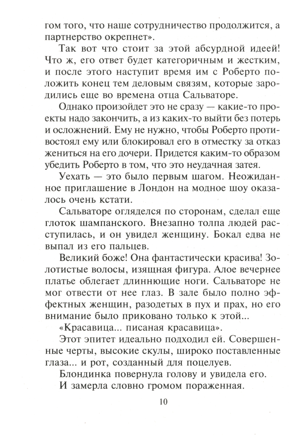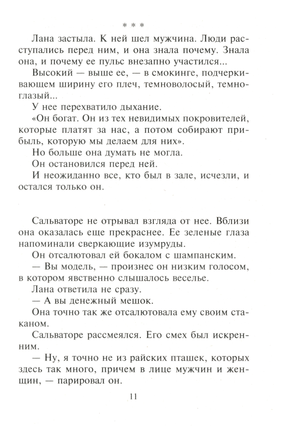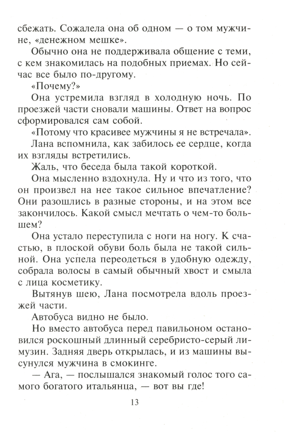 Топ-модель красавица Лана мечтает уйти из напряженного, шумного бизнеса. Но она не может этого сделать - бывший муж сбежал, получив огромный кредит под залог ее квартиры. В сердцах она выпалила свою историю великолепному мужчине в ответ на его предложение вместе поужинать. И вот этот мужчина, успешный итальянский бизнесмен, предлагает Лане выйти за него замуж. Прелесть заключается в том, что спустя год они разведутся, причем она, получив крупную сумму, решит свои проблемы, а он избавится от назойливых притязаний дочери своего компаньона. Но Лане грустно оттого, что их брак - временное предприятие…| Издательство | Центрполиграф |