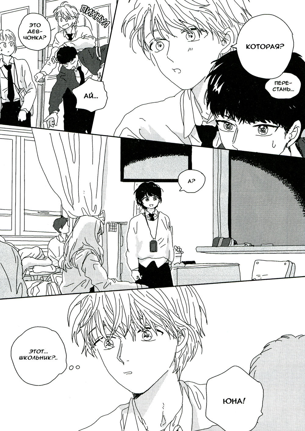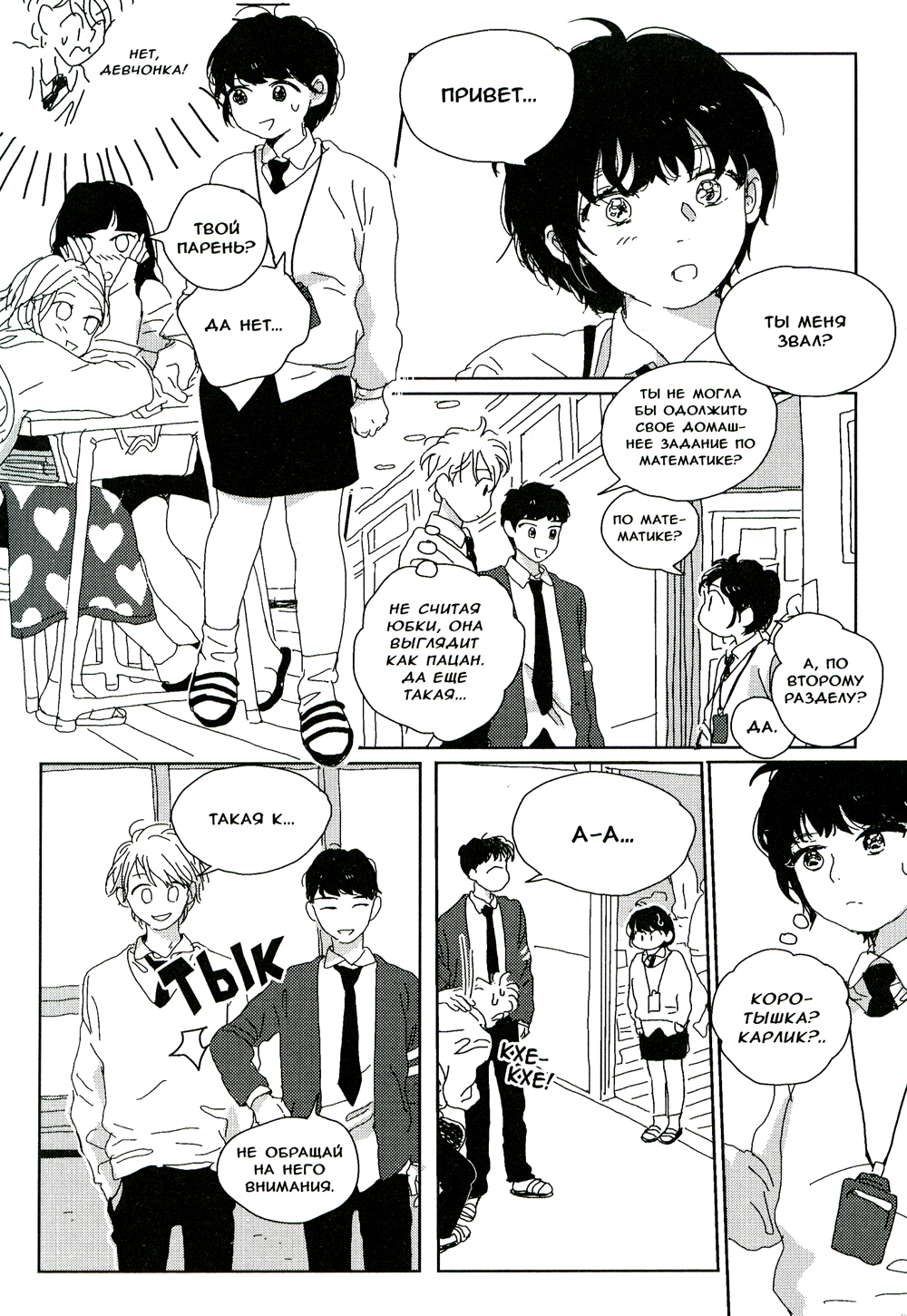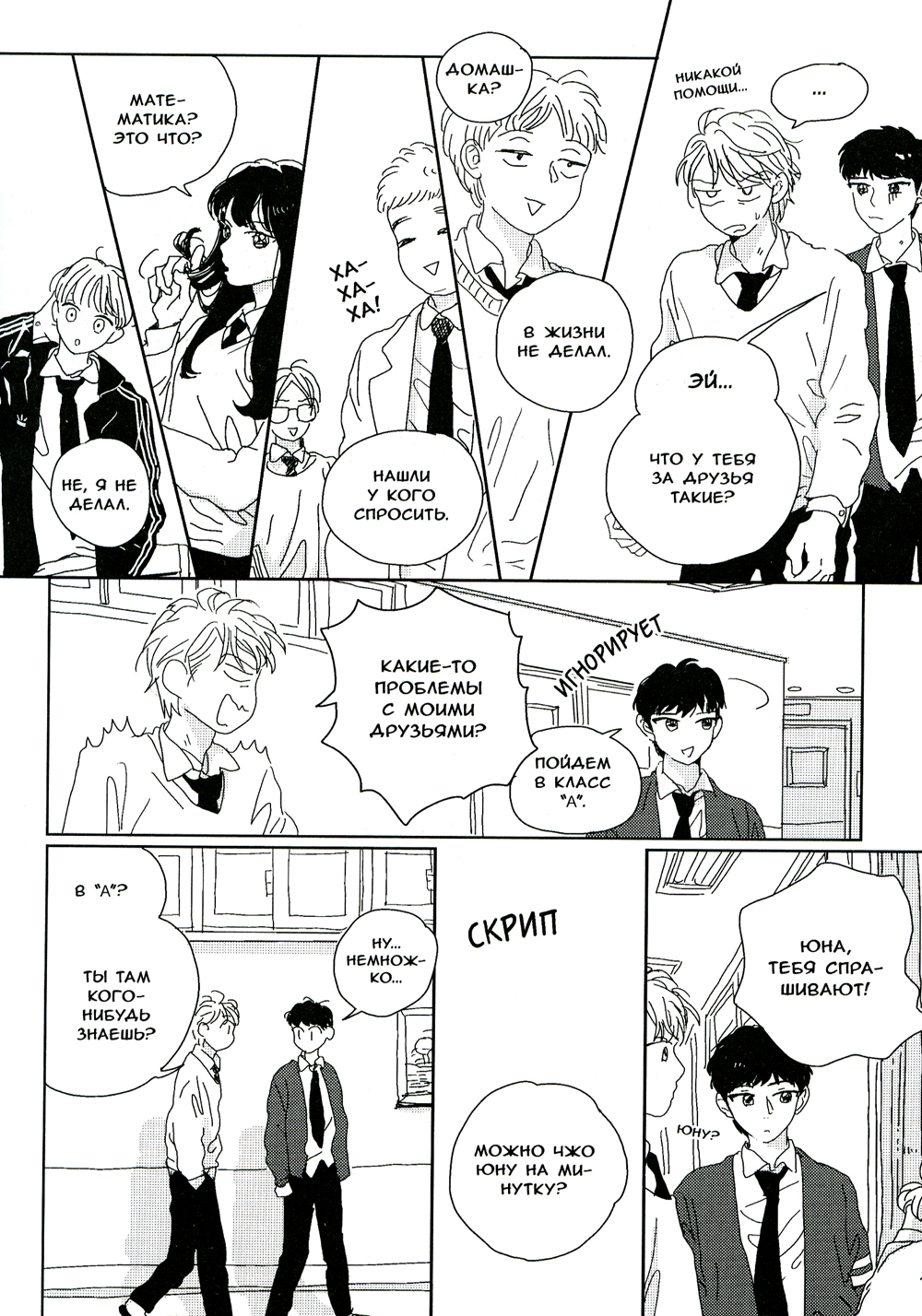 Юна - обычная девушка, маленькая и пухленькая, с простоватым лицом. Кажется, что у нее есть друзья и нет проблем в общении, но с переходом в новую школу не все оказывается так просто. Она боится остаться одна и пытается подстроиться под окружающих. Но даже в компании подруг чувствует себя одинокой. На церемонии начала учебного года Юна знакомится с Хвионом, а чуть позже - с его другом Сухёном, который очень популярен у девушек. Эта встреча вызвала странные слухи, непонимание подруг и даже травлю. Так ли светлы и безоблачны школьные дни?| Издательство | Фабрика комиксов |