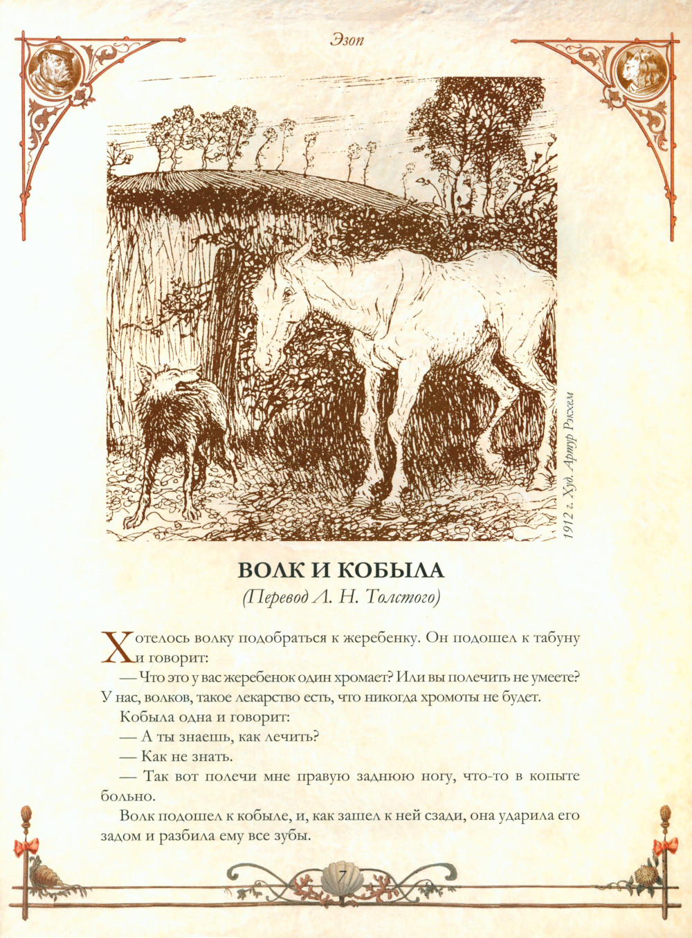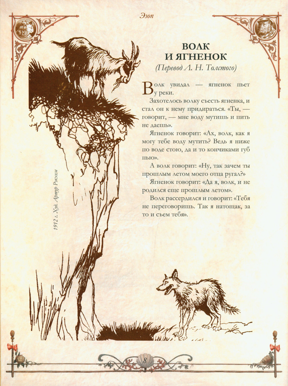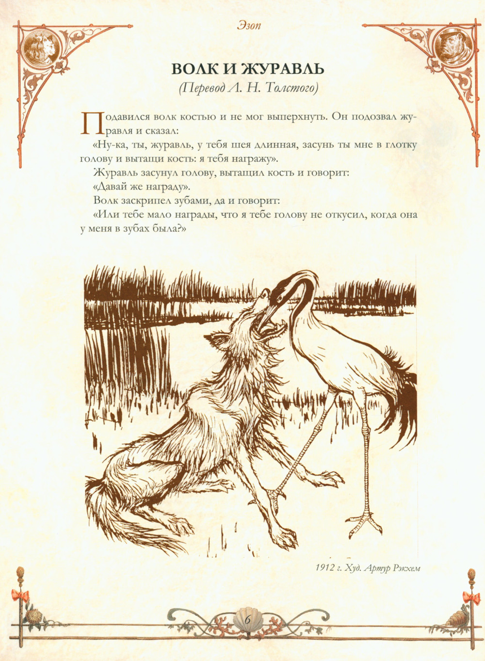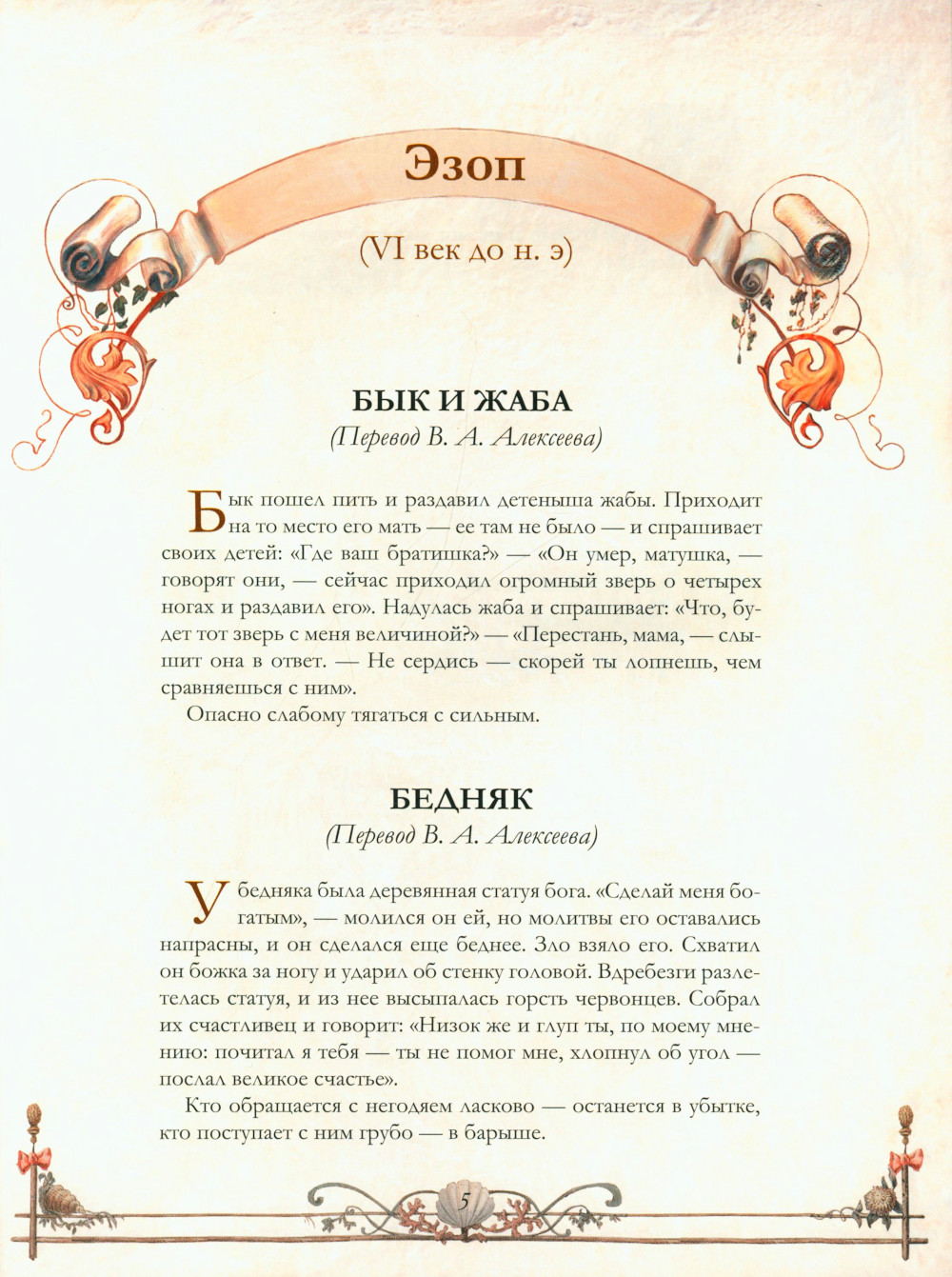 «...Мир, который находим мы в басне, есть некоторым образом чистое зеркало, в котором отражается мир человеческий», - так в начале XIX века охарактеризовал басню Василий Жуковский. Басня доставляет необыкновенное удовольствие читателям любого возраста. Не удивительно, ведь она восходит к чудесным сказаниям первобытных времен, необычайно популярным в культурах самых разных народов. Величайшим баснописцем древности был грек Эзоп (ок. 600-х гг. до н. э). От греков басни перешли к народам Европы и Азии, переводились и переделывались на всех языках, пока в России этот жанр не довел до гениального совершенства Иван Крылов (1769-1844). Мораль, получающая сквозь басню привлекательный характер, - таково главное свойство этого «чистого зеркала», помогающее человеку присмотреться к своим несовершенствам.| Издательство | Просвещение-Союз |
