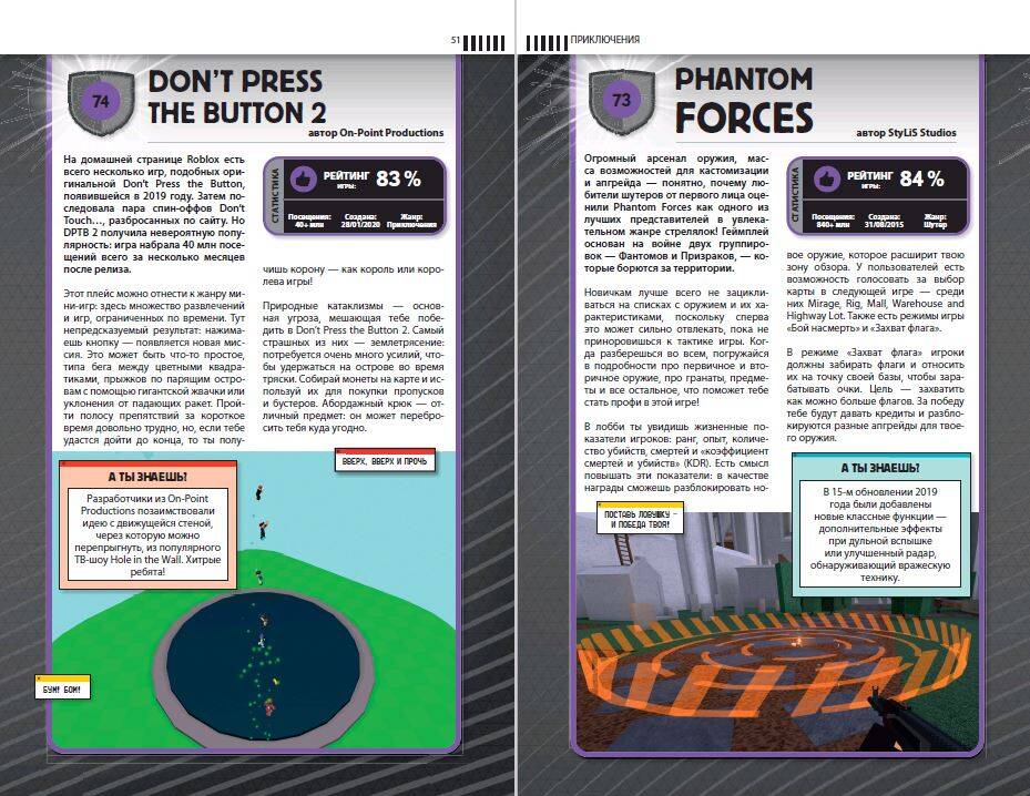 В Roblox есть тысячи игр, и эта книга расскажет тебе, какие из них самые лучшие. Независимо от того, новичок ты в Roblox или опытный ветеран, тебе понадобится это важное независимое руководство. Более 100 игр профилированы и оценены, причем игры разделены по жанрам. Помимо того, что каждой игре присваивается рейтинг Roblox, она наполнена множеством интересных и необычных фактов о каждой игре, а также последней статистикой по популярности, сложности, игровому процессу и многому другому. Это единственное на 100% неофициальное и полностью авторитетное руководство по играм Roblox, которое тебе когда-либо понадобится.| Издательство | ООО "Издательство "Эксмо" |