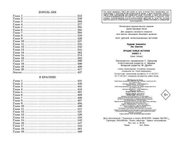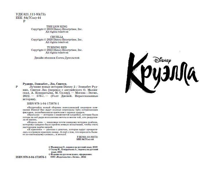 Как правильная юбка может спасти жизнь? Почему король саванны не любит умываться? Отчего в тринадцать лет некоторые девочки превращаются в диких зверей? Ответы на эти вопросы вы найдете в новом сборнике «Лучшие новые истории Disney 2». Здесь под одной обложкой вас ждут целых три потрясающих истории Disney - «Круэлла», «Король Лев» и «Я краснею». Все они невероятно популярны, а «Король Лев» и «Круэлла» даже получили премию «Оскар»! Общие продажи этих новеллизаций по отдельности уже превысили 76 000 экземпляров. В первом томе «Лучшие новые истории Disney» ищите новеллизации мультфильмов «Душа», «Лука», «Райя и последний дракон», «Энканто». Погрузитесь снова в потрясающую атмосферу волшебных историй Disney!| Издательство | ООО "Издательство "Эксмо" |