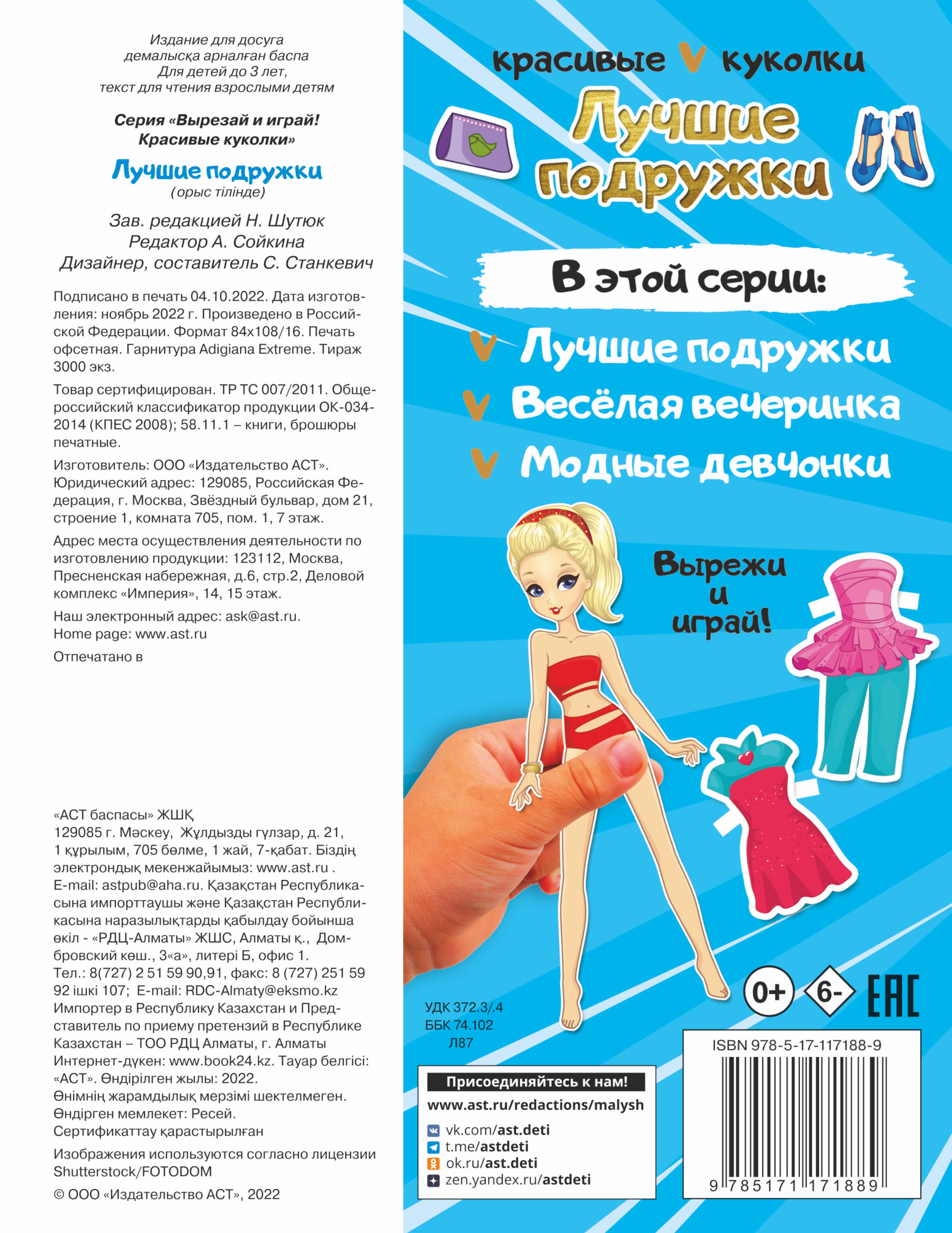 Катя, Ирина и Настя - лучшие подружки! Они с удовольствием примут тебя в свою компанию, расскажут о себе и поделятся своими секретами крепкой дружбы. В игровой набор входят 3 бумажные куклы и более 50 предметов одежды, обувь и аксессуары, которые можно сочетать между собой. Вырезай, веселись, играй!| Издательство | ИЗДАТЕЛЬСТВО "АСТ" |