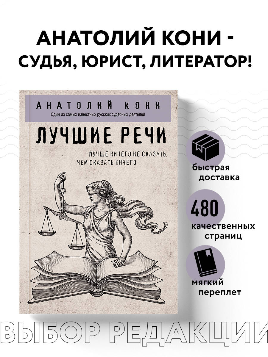 Анатолий Федорович Кони - знаменитый юрист, судья, государственный и общественный деятель, литератор, судебный оратор, действительный тайный советник, член Государственного совета Российской империи до 1917 года. В этом сборнике представлены не только самые выдающиеся речи А. Кони в качестве обвинителя, но и широко известные напутствия присяжным, а также кассационные заключения, написанные им уже во время работы судьей. «Лучшие речи» показывают, насколько усердно и энергично Анатолий Федорович работал во имя справедливости. Он был искренне предан своему делу и умел находить решения даже в самых трудных случаях, выделяясь среди других судебных деятелей своей честностью и неподкупностью.