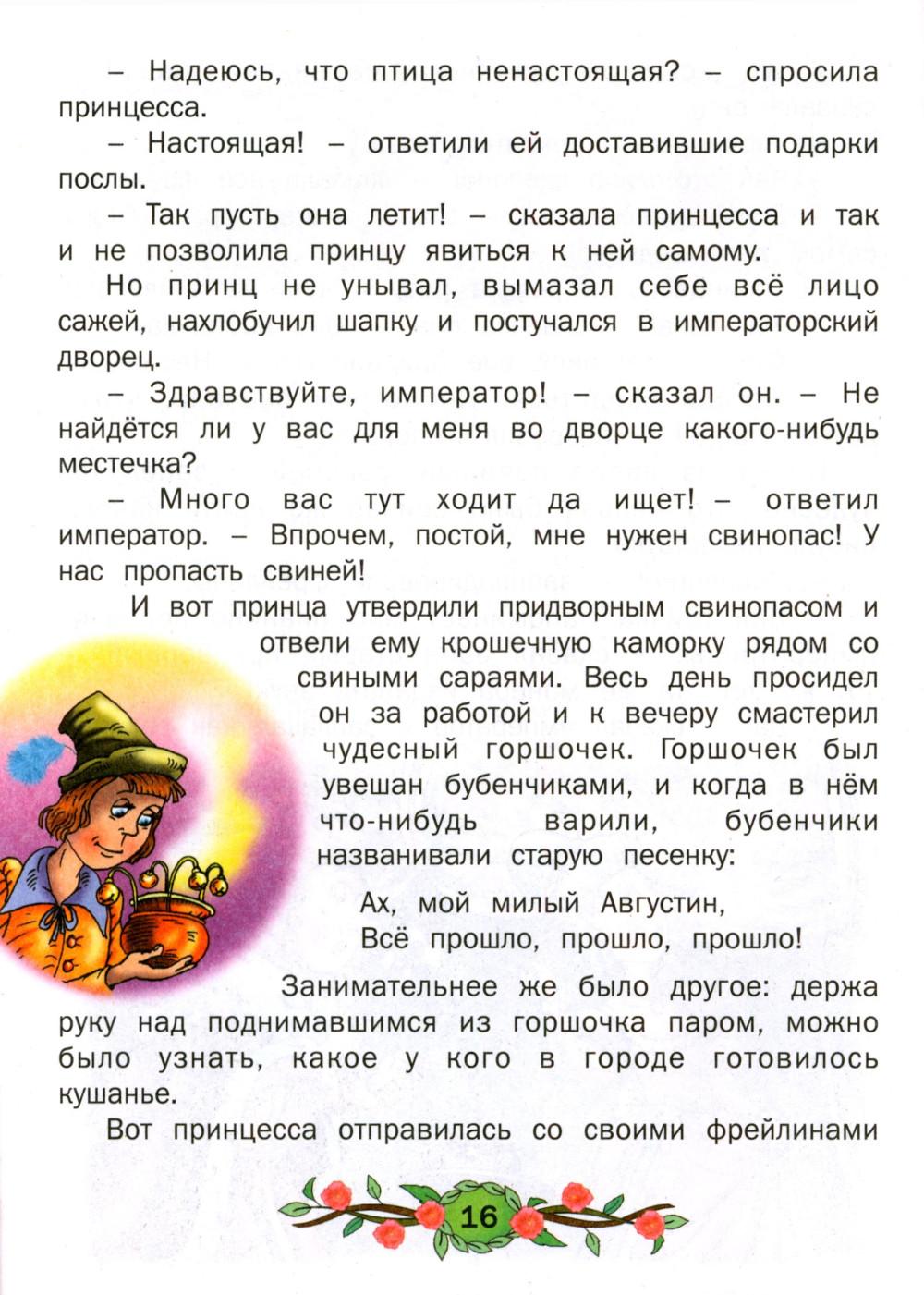 В этой красочно иллюстрированной книжке представлены сказки Х.К. Андерсена: «Принцесса на горошине»; «Новое платье короля»; «Свинопас»; «Ганс Чурбан»; «Огниво»; «Стойкий оловянный солдатик»; «Свинья.копилка»; «Мотылек»; «Дикие лебеди»;« Блоха и профессор»; «Истинная правда»; «Снеговик»; «Сундук.самоле»т; «Дюймовочка»; «Пастушка и трубочист»; «Снежная королева»; «Что муженек ни сделает, все хорошо».| Издательство | Харвест |