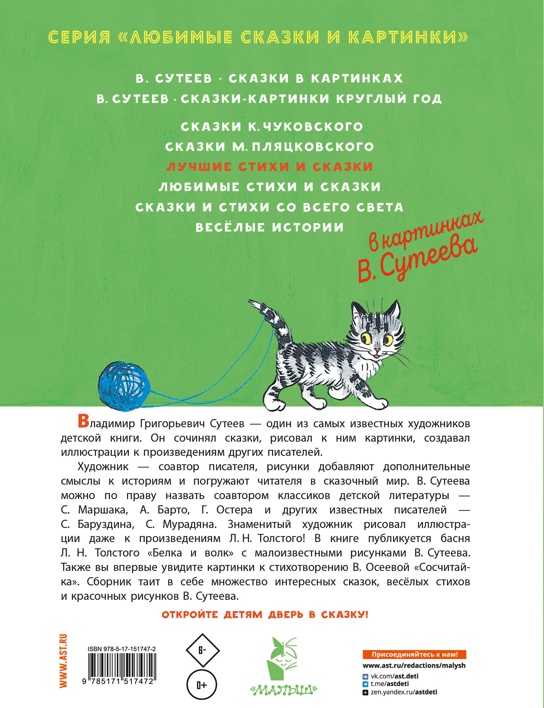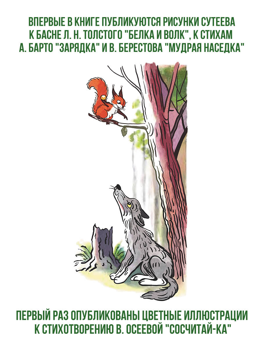 Владимир Григорьевич Сутеев - один из самых известных художников детской книги. Он сочинял сказки, рисовал к ним картинки, создавал иллюстрации к произведениям других писателей. Художник - соавтор писателя, рисунки добавляют дополнительные смыслы к историям и погружают читателя в сказочный мир. В. Сутеева можно по праву назвать соавтором классиков детской литературы - С. Маршака, А. Барто, Г. Остера - и менее известных писателей - С. Баруздина, С. Мурадяна. Знаменитый художник рисовал иллюстрации даже к произведениям Л. Н. Толстого! В книге публикуется басня Л. Н. Толстого «Белка и волк» с мало известными рисунками В. Сутеева. Также вы впервые увидите картинки к стихотворению В. Осеевой «Сосчитай-ка». Сборник таит в себе множество интересных сказок, весёлых стихов, красочных и неизвестных рисунков В. Сутеева. Откройте детям дверь в сказку!