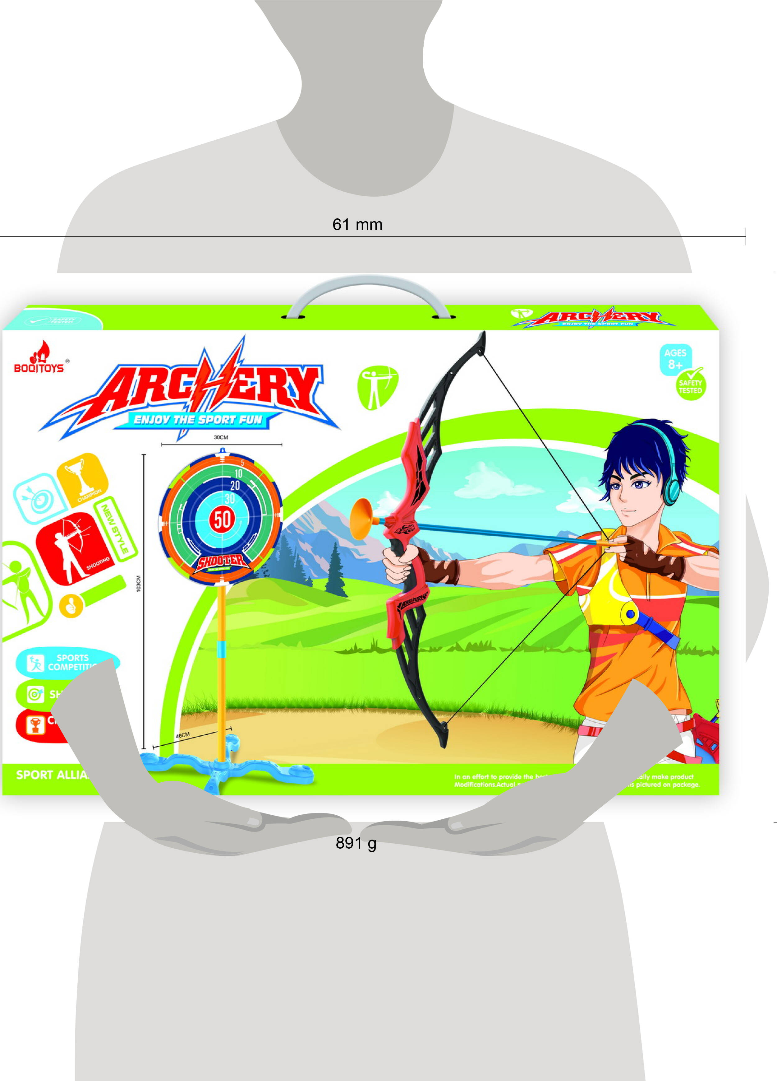 Чтобы заинтересовать своего ребенка чем-то полезным и одновременно увлекательным, можно привить ему любовь к стрельбе из лука. Стрельба вызывает азарт и является достаточно необычным, а также оригинальным родом занятий, что, несомненно, заинтересует детей и может перерасти в интересное хобби. Размер: 57х37х5,5см. В комплекте: 3 стрелы на присосках, мишень. В коробке.