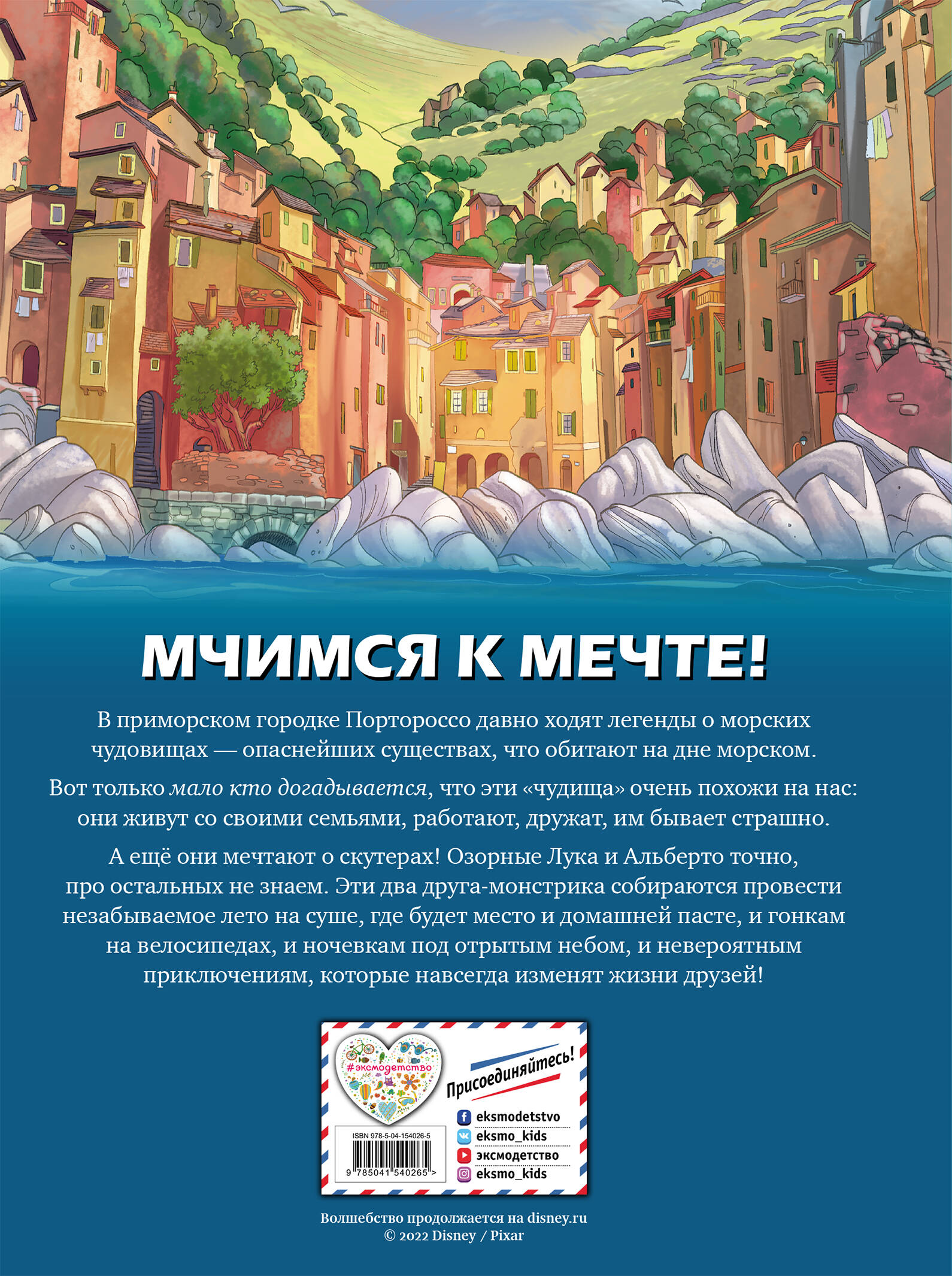 Мчимся к мечте! В приморском городке Портороссо давно ходят легенды о морских чудовищах - опаснейших существах, что обитают на дне морском. Вот только мало кто догадывается, что эти «чудища» совсем как мы: они живут своими семьями, работают, дружат, им бывает страшно. А ещё они мечтают о скутерах! Ну, по крайней мере, Лука и Альберто, про остальных не знаем. Эти два друга-монстрика собираются провести незабываемое лето на суше, где будет место и домашней пасте, и гонкам на велосипедах, и ночевкам под отрытым небом и невероятным приключениям, которые навсегда изменят жизни друзей!