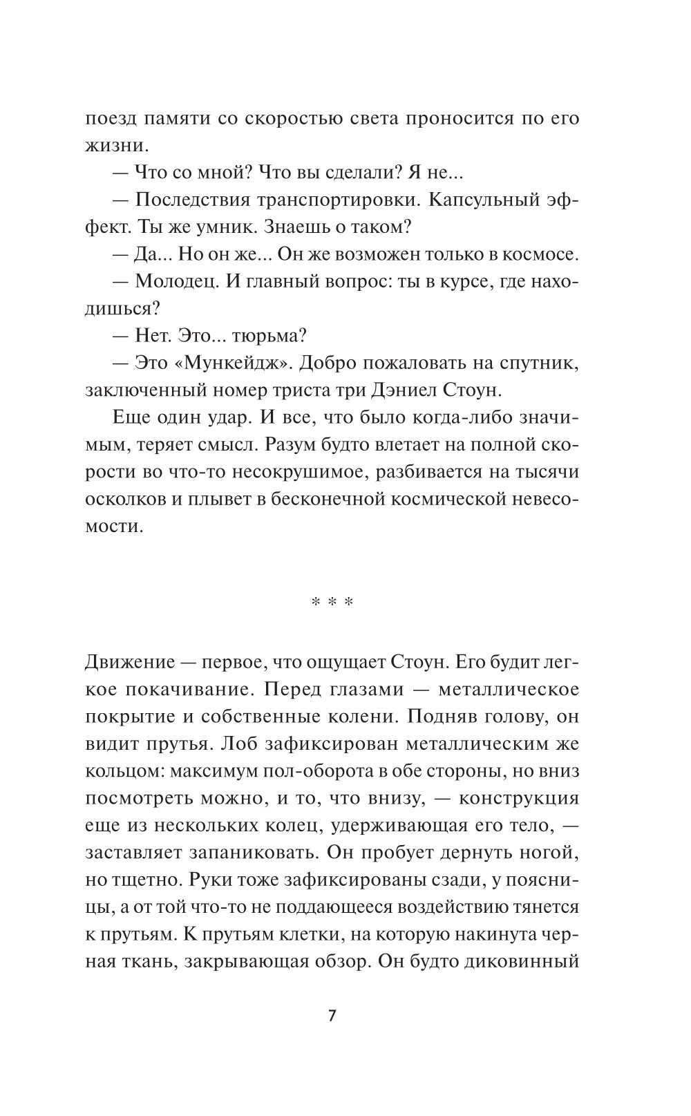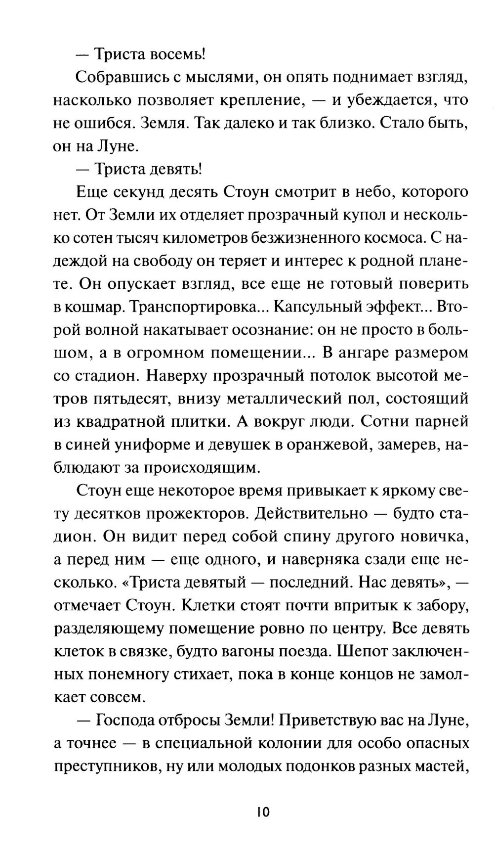 Добро пожаловать в «Мункейдж»! Будущее наступило: исправительная колония на Луне открывает свои двери для отбросов Земли - особо опасных молодых преступников, которым не нашлось места на родной планете. Видеокамеры, решетки, электрошокеры, синтетическая еда - каждый день здесь похож на предыдущий, а главная валюта - репутация. Среди заключенных оказывается Дэниел Стоун, хакер из Чикаго. Он решает выжить любой ценой, чтобы разгадать тайны «Мункейджа», изменить правила игры и вновь обрести свободу.| Издательство | Манн, Иванов и Фербер |