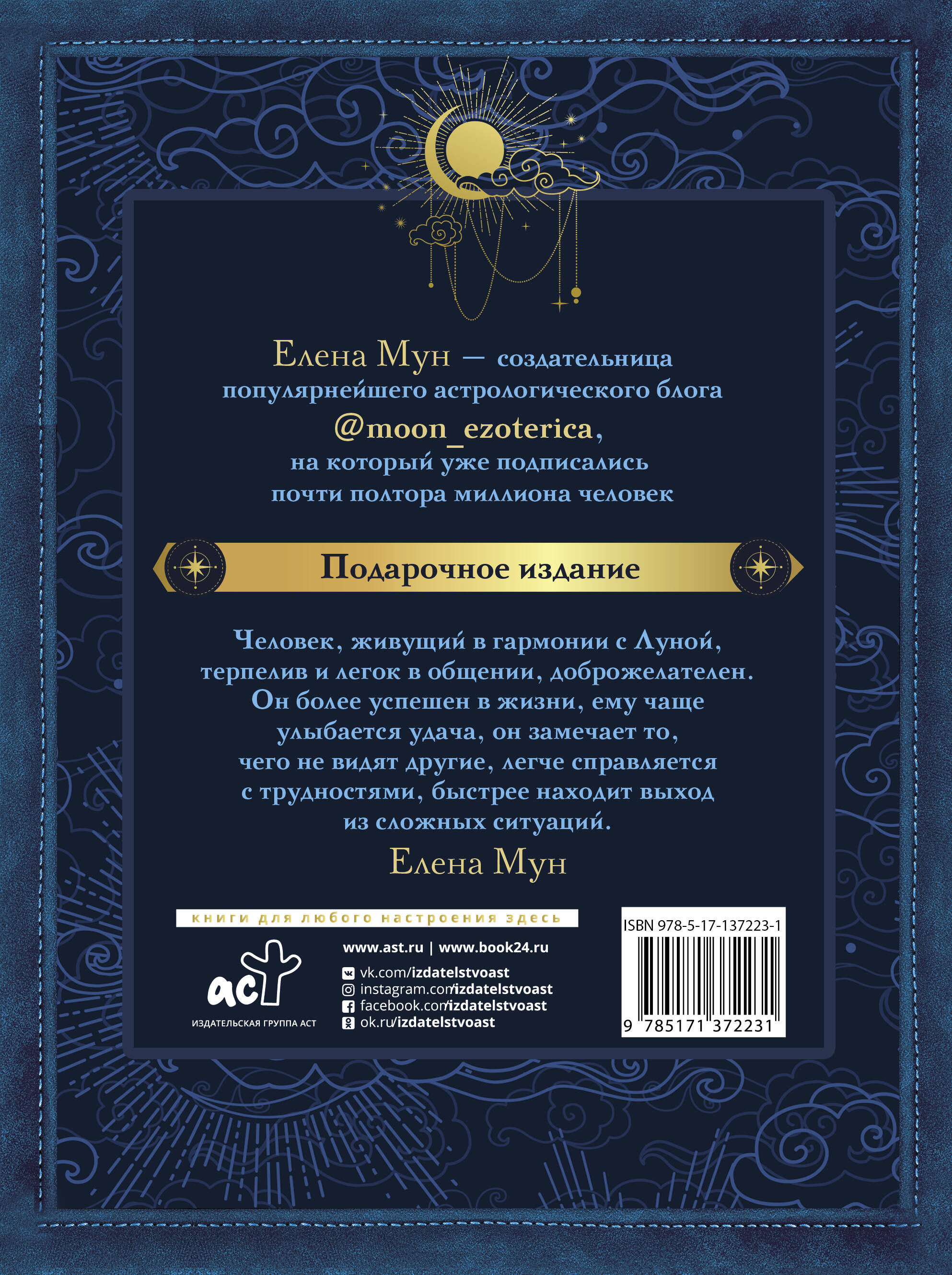 Елена Мун - создательница астрологического блога @moon_ezoterica. Ее лунный календарь - не обычное описание фаз луны, а опыт человека, прошедшего сложный путь к благополучию и изобилию. В книге вы найдете подробную расшифровку и значение каждого лунного дня, специальные лунные ритуалы, предупреждения и советы, которые каждый день лунного цикла сделают для вас благоприятным.| Издательство | Издательство "АСТ" |