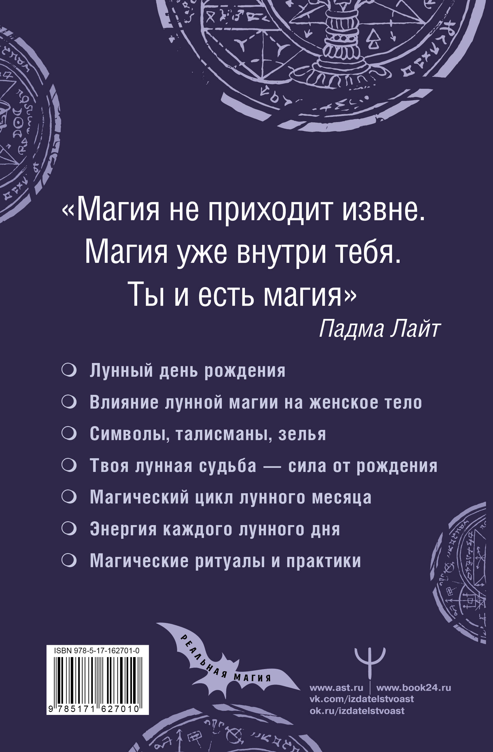 Падма Лайт - ворожея в третьем поколении, которая обладает тайными знаниями работы с энергиями Космоса и особенно энергиями Луны. Книги Падмы - для женщин, которые чувствуют в себе ведовское начало, особую силу, связь с лунной энергией, но не знают, как с ней обращаться и использовать в жизни. В этой книге Падма Лайт обращается к Луне, посреднику между миром людей и миром магии. В книге рассматриваются различные аспекты лунной магии, объясняется, как использовать силу лунных фаз для достижения желаемых целей. Книга содержит практические рекомендации по проведению ритуалов, медитаций и работе с энергией Луны в различные периоды ее цикла. Также здесь можно найти уникальные методики, основанные на астрологических аспектах лунных дней, которые помогут читателям гармонизировать свою жизнь и достичь внутреннего равновесия. Это не просто книга о магии, но и практическое руководство для тех, кто стремится понять и использовать силу Луны в своих делах и творчестве. "Луна - это портал в мир магии. Луна в определенном знаке зодиака указывает на магическую сущность человека, на то, к чему стремится его душа". Падма Лайт| Издательство | Издательство "АСТ" |