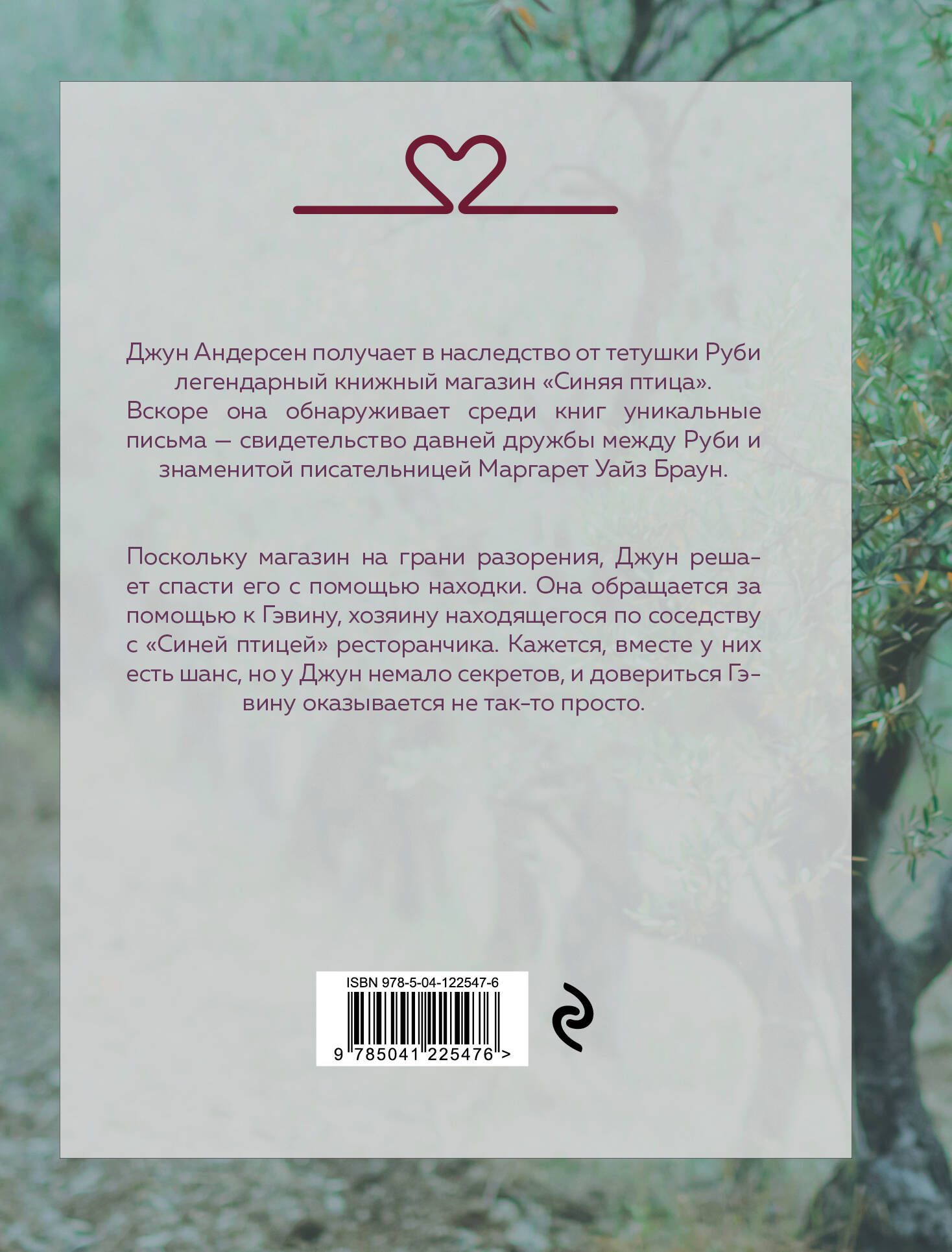 Джун Андерсен получает в наследство от тетушки знаменитый книжный магазин «Синяя птица». К своему удивлению, она находит там письма, свидетельствующие о близком знакомстве ее тети с известной писательницей Маргарет Уайз Браун. Джун решает использовать эту неожиданную находку для спасения магазина, находящегося на грани банкротства, и обращается за помощью к Гэвину, хозяину ресторанчика, находящегося по соседству. К чему приведет этот союз? И какие секреты скрывает прошлое Джун? Роман для тех, кто ценит в литературе чувственность и легкость. Для всех, кто обожает сюрпризы и семейные тайны. Для тех, кто интересуется психологией человеческих взаимоотношений. Столкновение двух эпох, интригующие семейные тайны и сильная сюжетная линия делают этот роман похожим на знаменитый роман Джона Голсуори «Сага о Форсайтах».| Издательство | ООО "Издательство "Эксмо" |
