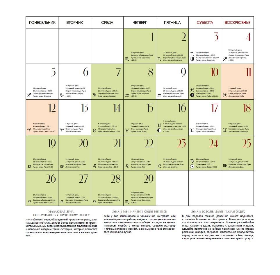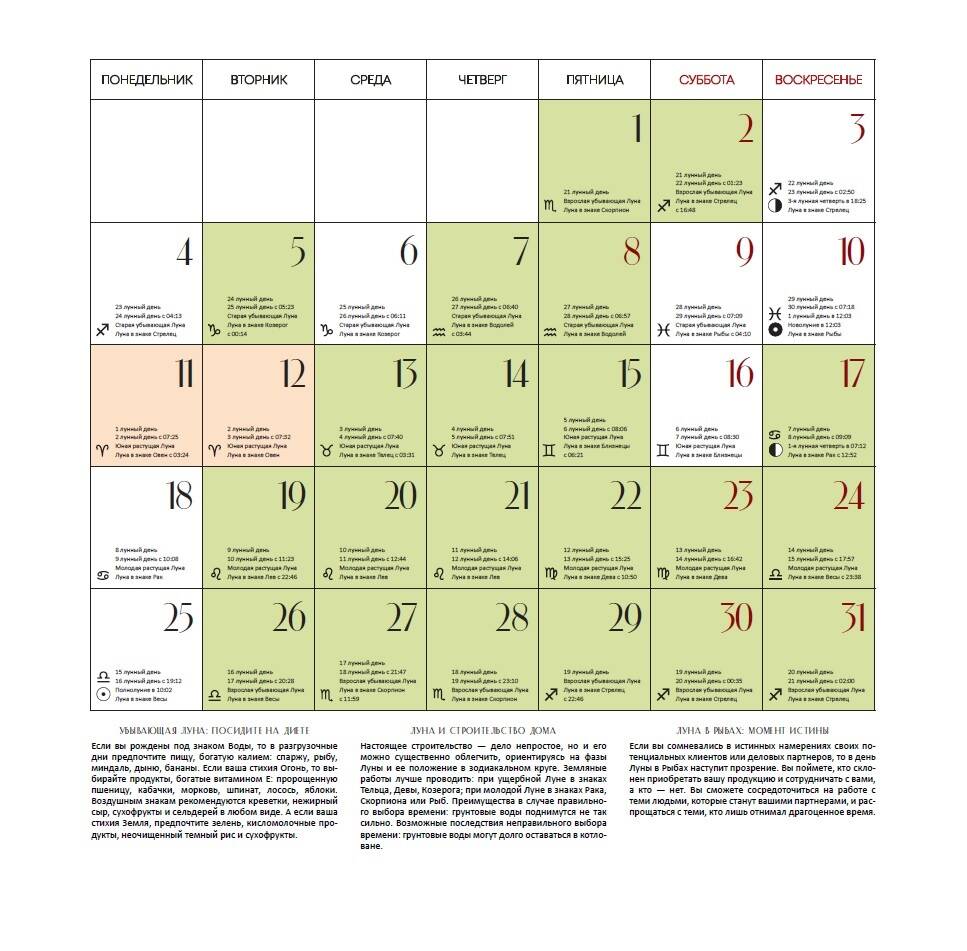 Красочный атмосферный календарь содержит подробные данные о лунных днях и фазах и советы о том, как жить согласно лунному циклу. Предназначен для тех, кто использует подсказки лунных ритмов, чтобы грамотно планировать каждый день, настроиться на правильный лад и всегда добиваться успеха.| Издательство | ИЗДАТЕЛЬСТВО "АСТ" |