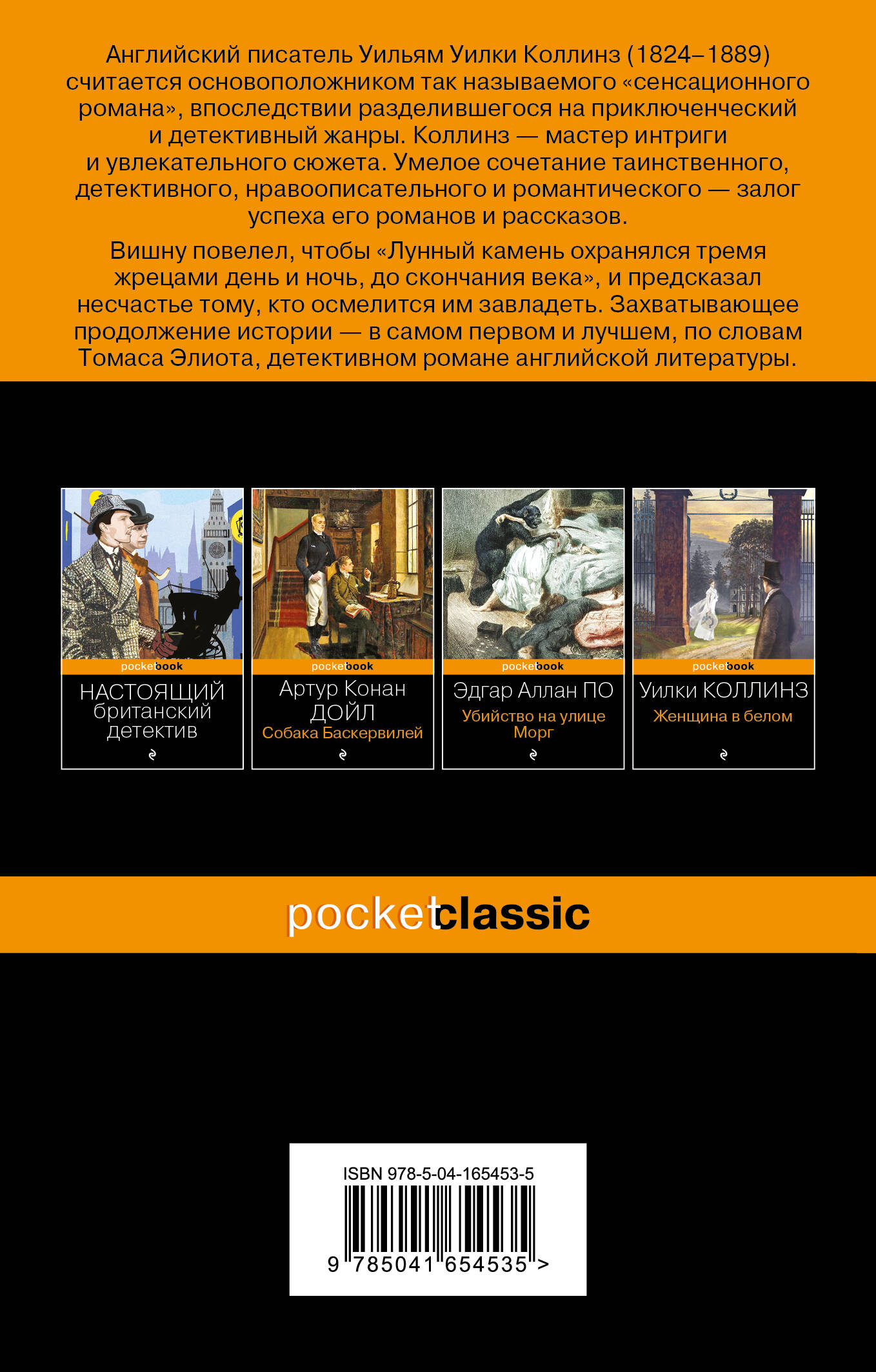 Идеи и сюжетные ходы Уилки Коллинза из романа «Лунный камень» использовали Конан Дойл, Гилберт Честертон, Агата Кристи, многое стало классикой для детективного жанра. Индуистский бог Вишну повелел, чтобы «Лунный камень охранялся тремя жрецами день и ночь, до скончания века», и предсказал несчастье тому, кто осмелится им завладеть. Захватывающее продолжение истории - в самом первом и самом лучшем, по словам Томаса Элиота, детективном романе английской литературы.