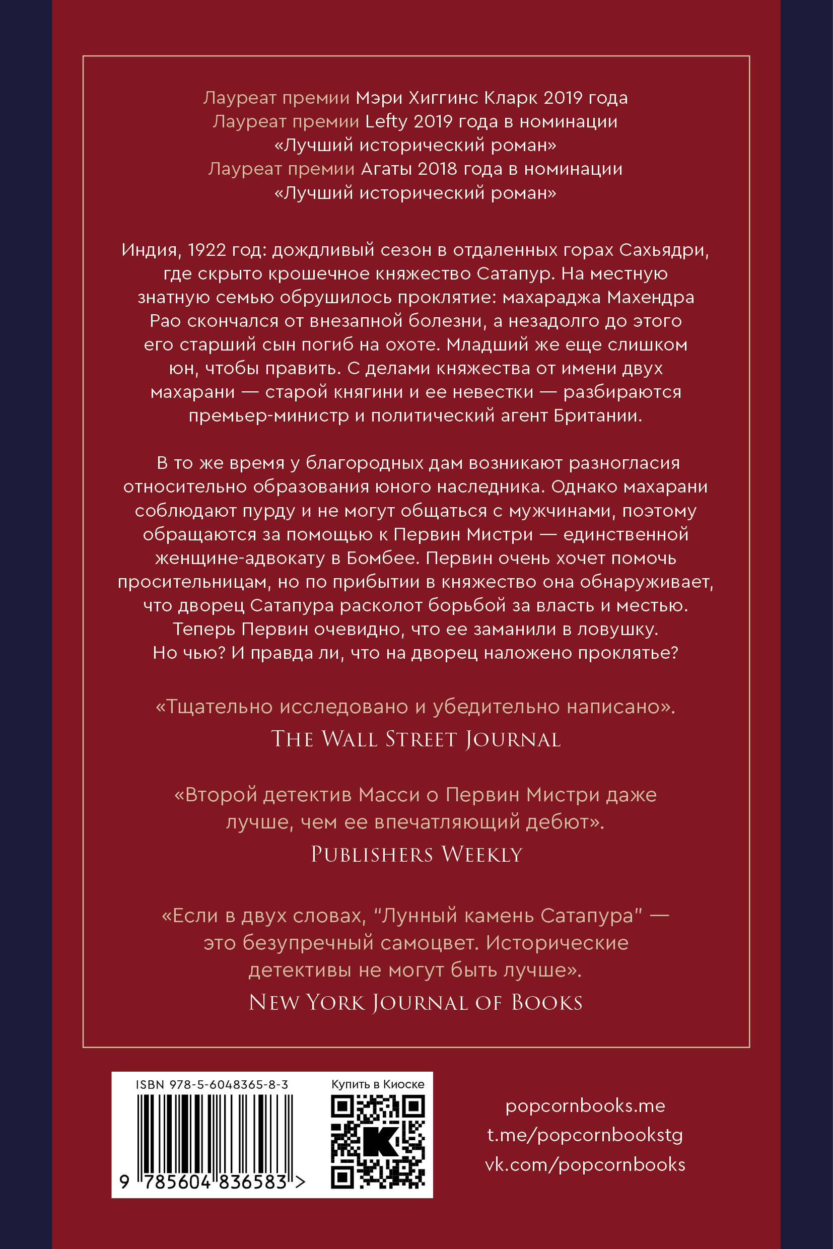 Индия, 1922 год: дождливый сезон в отдаленных горах Сахьядри, где скрыто крошечное княжество Сатапур. Кажется, на местную княжескую семью обрушилось проклятие. Махараджа Махендра Рао скончался от внезапной болезни вскоре после трагического несчастного случая на охоте, в котором погиб его старший сын. Младший же еще слишком юн, чтобы править королевством, поэтому за него это делают премьер-министр, дядя молодого князя, и политический агент Британии от имени двух махарани Сатапура - старой княгини и ее невестки. Благородные дамы находятся в разногласии относительно образования юного наследника, и им нужна помощь юриста. Однако махарани соблюдают пурду и не могут общаться с мужчинами. Только один человек может им помочь - Первин Мистри, единственная женщина-адвокат в Бомбее. Первин решительно стремится принести мир в княжеский дом и дать обоснованную рекомендацию для будущего махараджи, но по прибытии она обнаруживает, что дворец Сатапура расколот борьбой за власть и кровавой местью. Слишком поздно ей становится ясно, что она попала в ловушку. Но чью? И как она может защитить детей от смертельного проклятия дворца?| Издательство | ИНДИВИДУУМ ПРИНТ ООО |