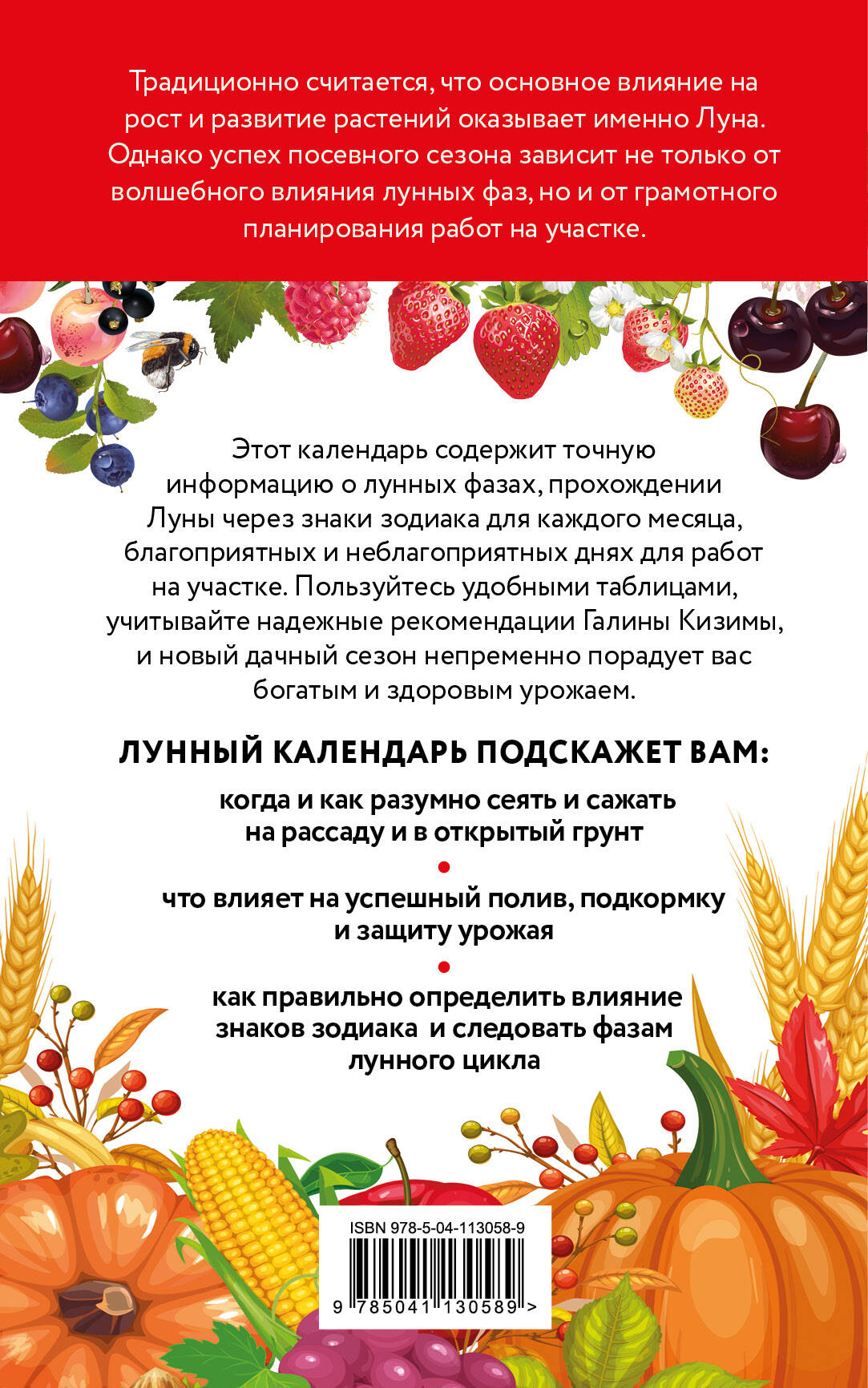 Точный лунный календарь от известного питерского автора Галины Кизимы не один год помогает дачникам правильно спланировать работы в саду, огороде и цветнике! Удобные таблицы и практические рекомендации позволят даже начинающему садоводу найти ответы на самые актуальные вопросы: что, когда и как посеять, подкормить и защитить, на что обратить внимание при возделывании участка, чтобы получить высокий урожай, и какие дни наиболее благоприятны для работ, согласно лунным циклам.| Издательство | ООО "Издательство "Эксмо" |