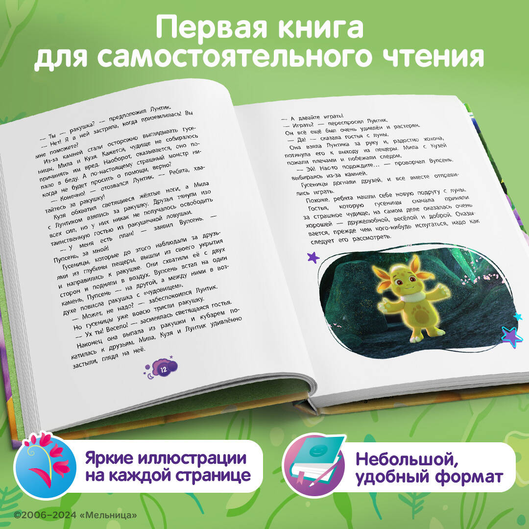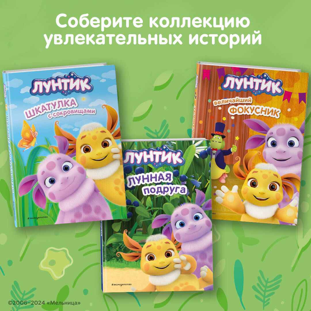 Сборник историй для малышей, таких же любознательных, как Лунтик! Отправляйтесь навстречу приключениям вместе с добрым и любознательным Лунтиком, его верными друзьями - Кузей, Пчелёнком и Милой - и их новой подругой. В этой книге много увлекательных рассказов о том, кем окажется таинственная гостья, внезапно свалившаяся с луны, какое необычное имя придумают для неё новые друзья и где найдёт себе дом эта непоседливая девчонка. Добрые и интересные сказки так приятно слушать на ночь! А большой формат и множество красочных иллюстраций ещё больше порадуют юных поклонников мультсериала о Лунтике и его друзьях.| Издательство | ООО "Издательство "Эксмо" |