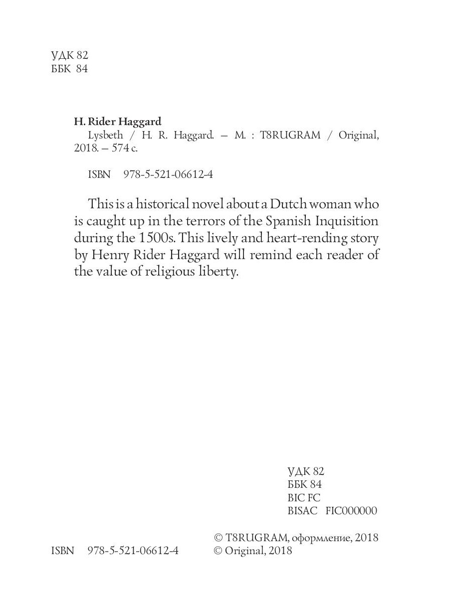 This is a historical novel about a Dutch woman who is caught up in the terrors of the Spanish Inquisition during the 1500s. This lively and heart-rending story by Henry Rider Haggard will remind each reader of the value of religious liberty.