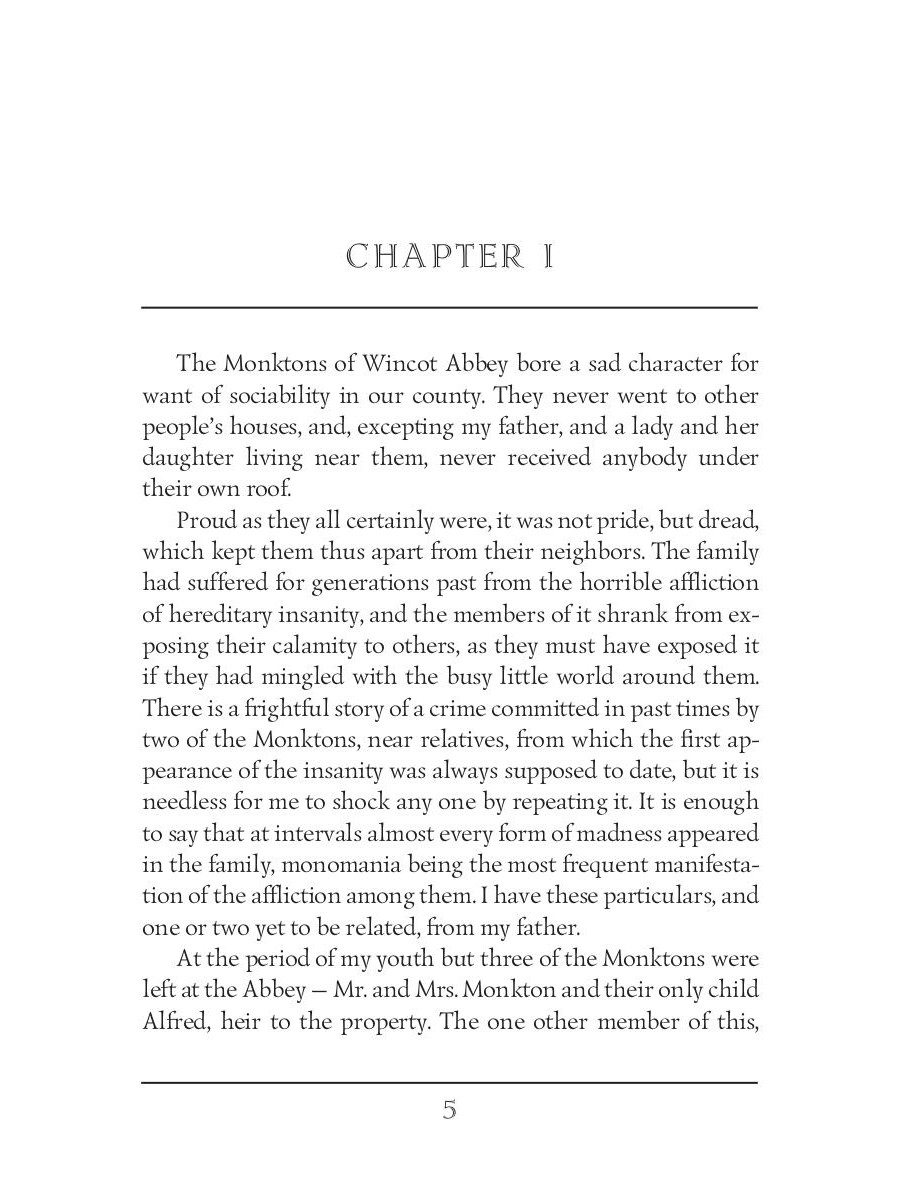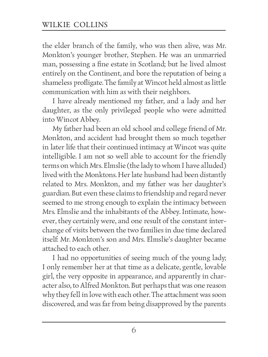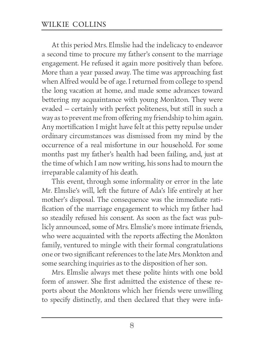 William Wilkie Collins was an English novelist, playwright, and short story writer. Mad Monkton is a bizarre ghost story. It is said that a strain of hereditary madness blights the Monkton family, heirs to the huge domain of Wincot Abbey. Rumours in the neighbourhood are that Alfred, the youngest scion, has inherited this insanity. He is is engaged to his childhood sweetheart, Ada Elmslie. However, Alfred suddenly departs for Italy, seeking the corpse of his disreputable uncle, who is believed to have been killed in a duel.