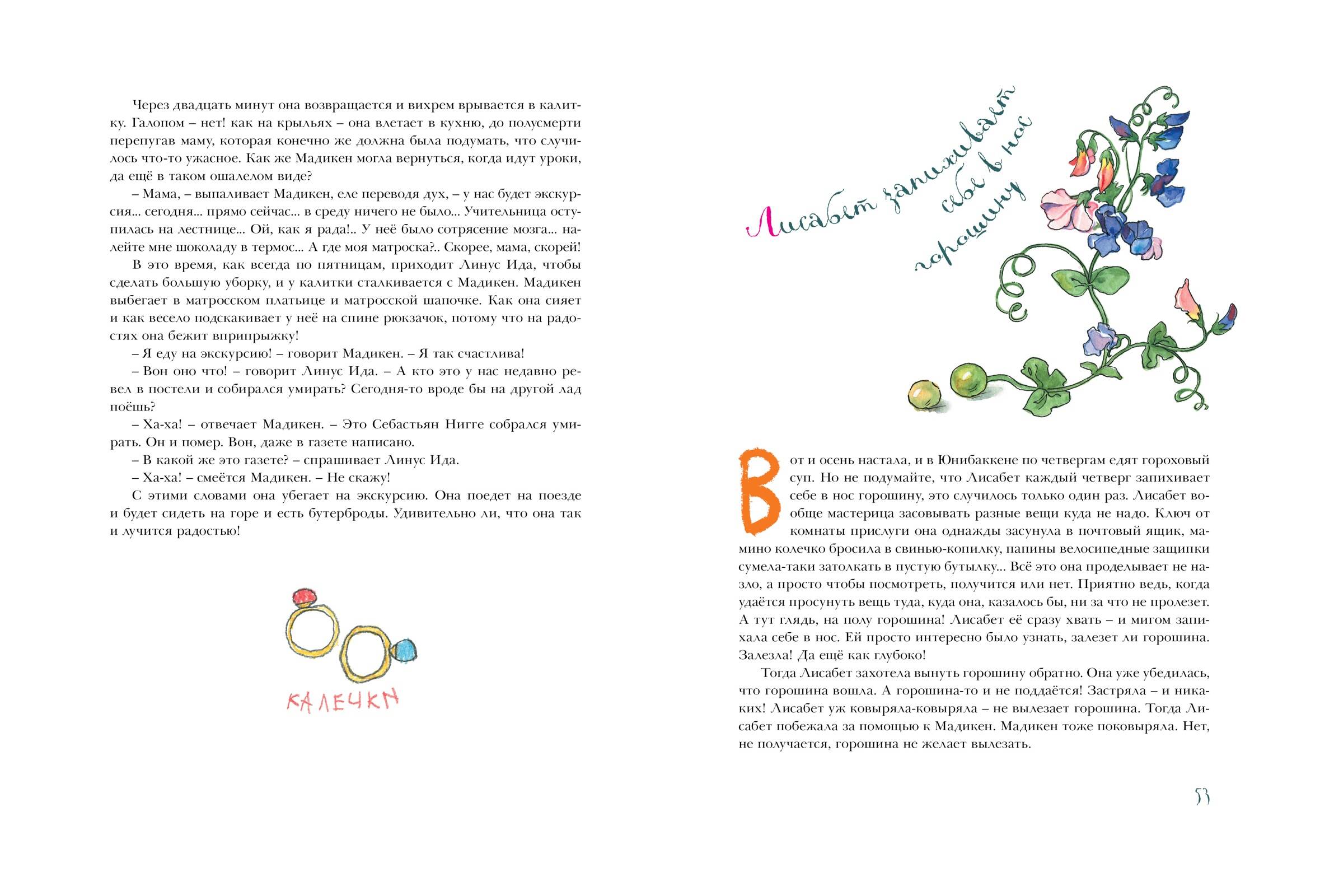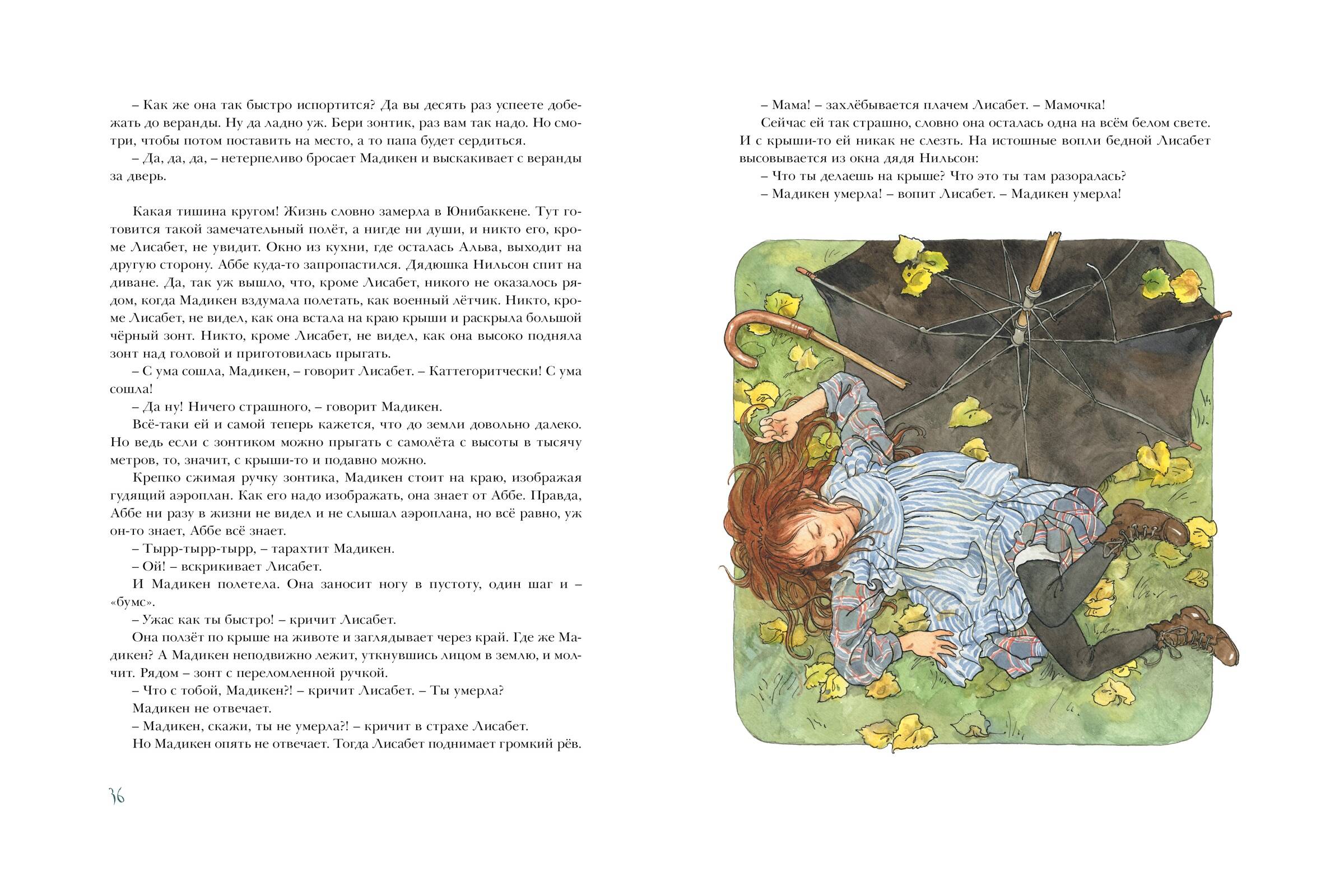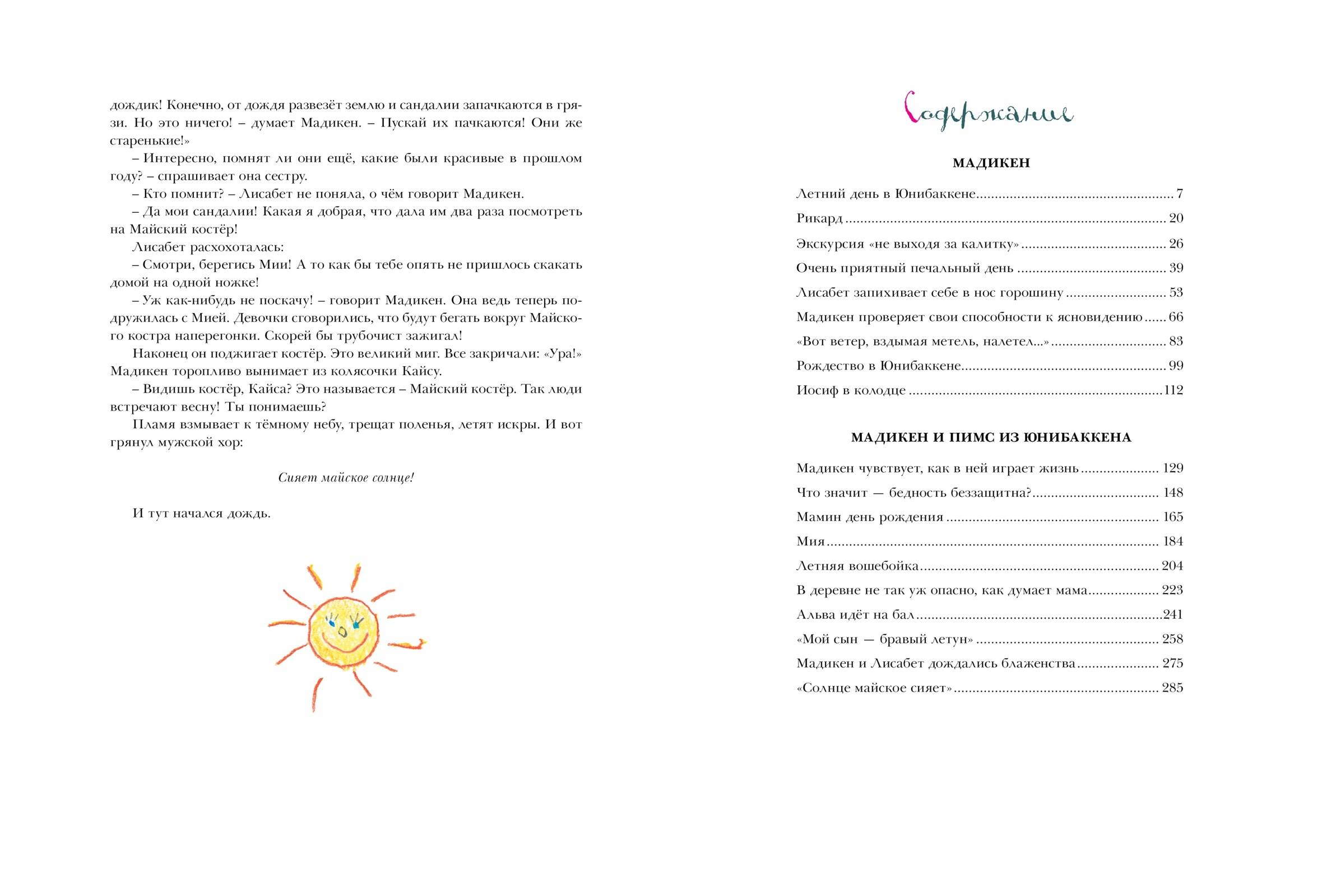 Мадикен живёт в большом красном доме возле речки. Лучшего места, чем это, на всём свете не сыскать, считает она. Ещё там живут мама и папа, помощница Альва и малышка Пимс, которая везде и всюду следует за своей старшей сестрой. Куда одна, туда и другая. Вместе им всегда весело. Да и как может быть иначе! Ведь здесь столько всего интересного: можно купаться, качаться на качелях, играть в крокет, поливать огород и поить молоком ёжика!