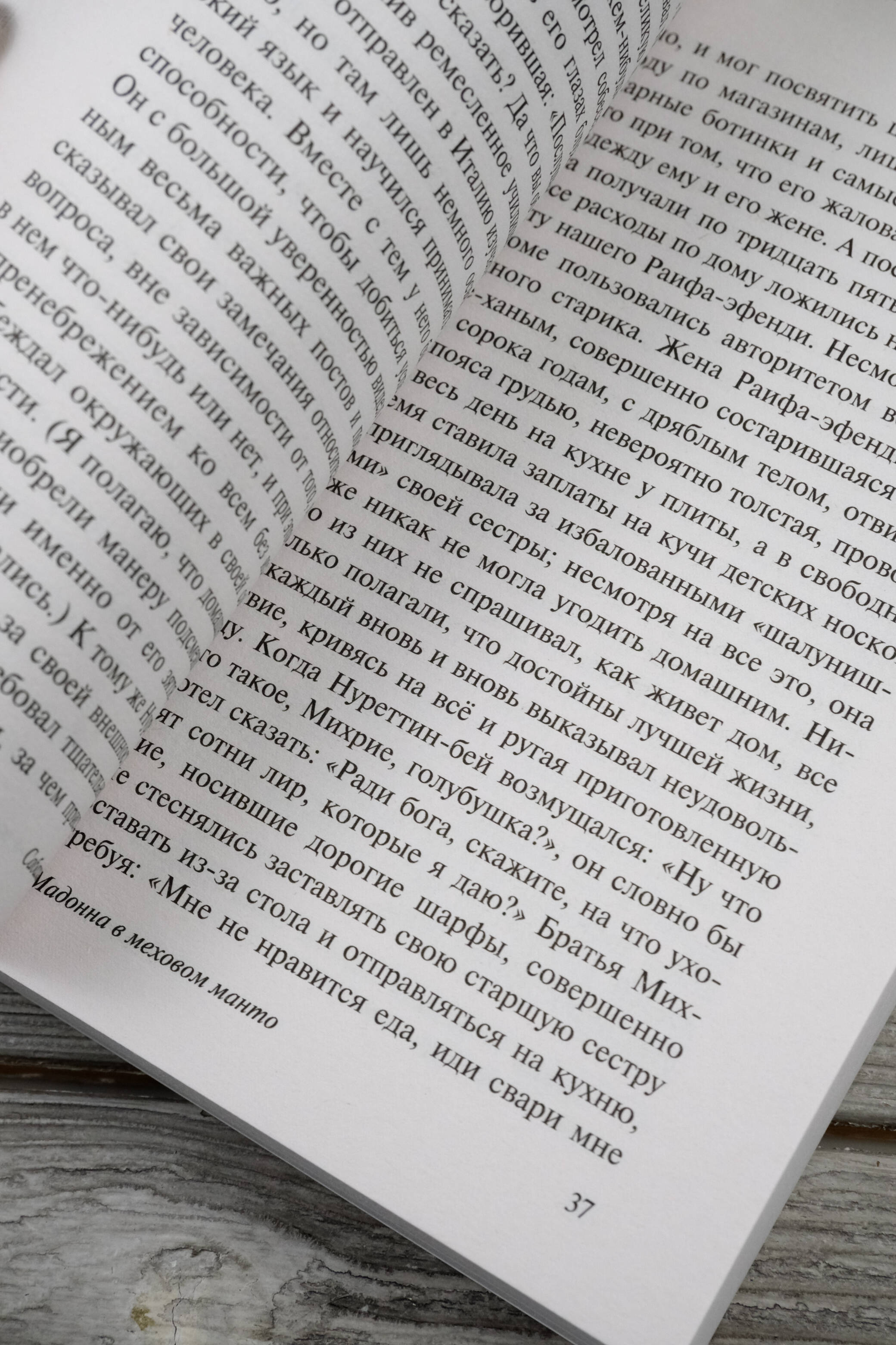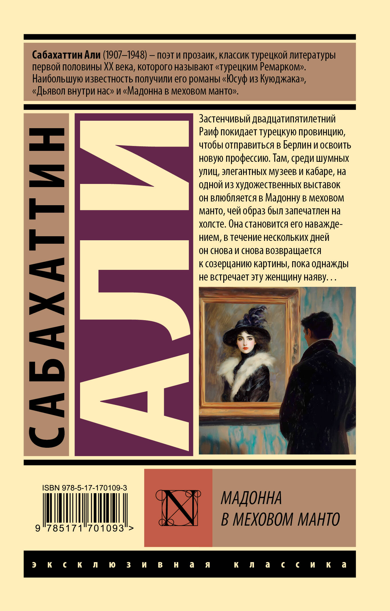 Застенчивый двадцатипятилетний Раиф покидает турецкую провинцию, чтобы отправиться в Берлин и освоить новую профессию. Там, среди шумных улиц, элегантных музеев и кабаре, на одной из художественных выставок он влюбляется в женщину в меховом манто, чей образ был запечатлен на холсте. Мадонна становится его наваждением, в течение нескольких дней он снова и снова возвращается к созерцанию картины, пока однажды не встречает эту женщину наяву…| Издательство | Издательство "АСТ" |
