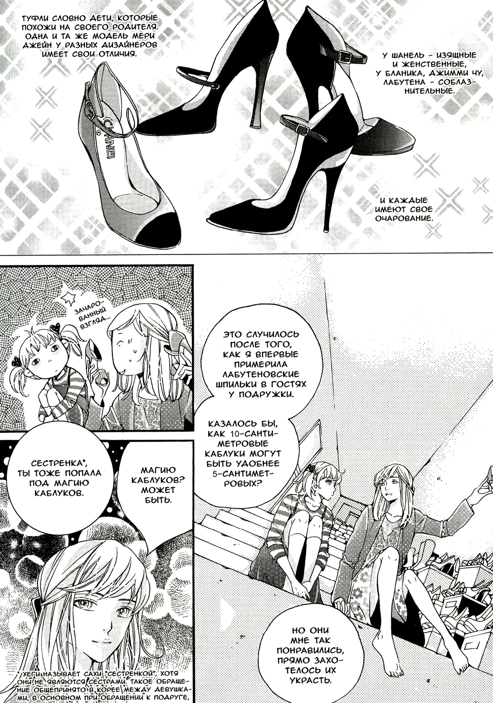 Эта история разворачивается в небольшом городке Санъю с девушкой по имени Мун Хеги. Она подрабатывает чисткой обуви, и делает это блестяще! Казалось, ничто не нарушит размеренную жизнь героини, но в один прекрасный день в городок приезжают двое: обходительный Хан и беспечный Йоль. Они очень разные, но оба занимаются обувным бизнесом, точнее пытаются наладить работу небольшого местного магазинчика. Что же из этого получится?..| Издательство | Фабрика комиксов |