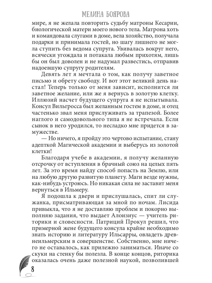 Стать адепткой магической академии - это мой шанс вырваться из золотой клетки. Вот уже девять лет я живу чужой жизнью в мире под названием Ильсарра. Здесь меня зовут Фелиция Ромелин, и я должна выйти замуж за сына консула, повинуясь воле отца. Но у меня свои планы на жизнь! Я готова к любым испытаниям, лишь бы стать магом и обрести долгожданную свободу. Не ожидала только того, что в академии судьба столкнет меня с женихом, из-за которого идеальный план пойдет насмарку.| Издательство | Т8 RUGRAM |