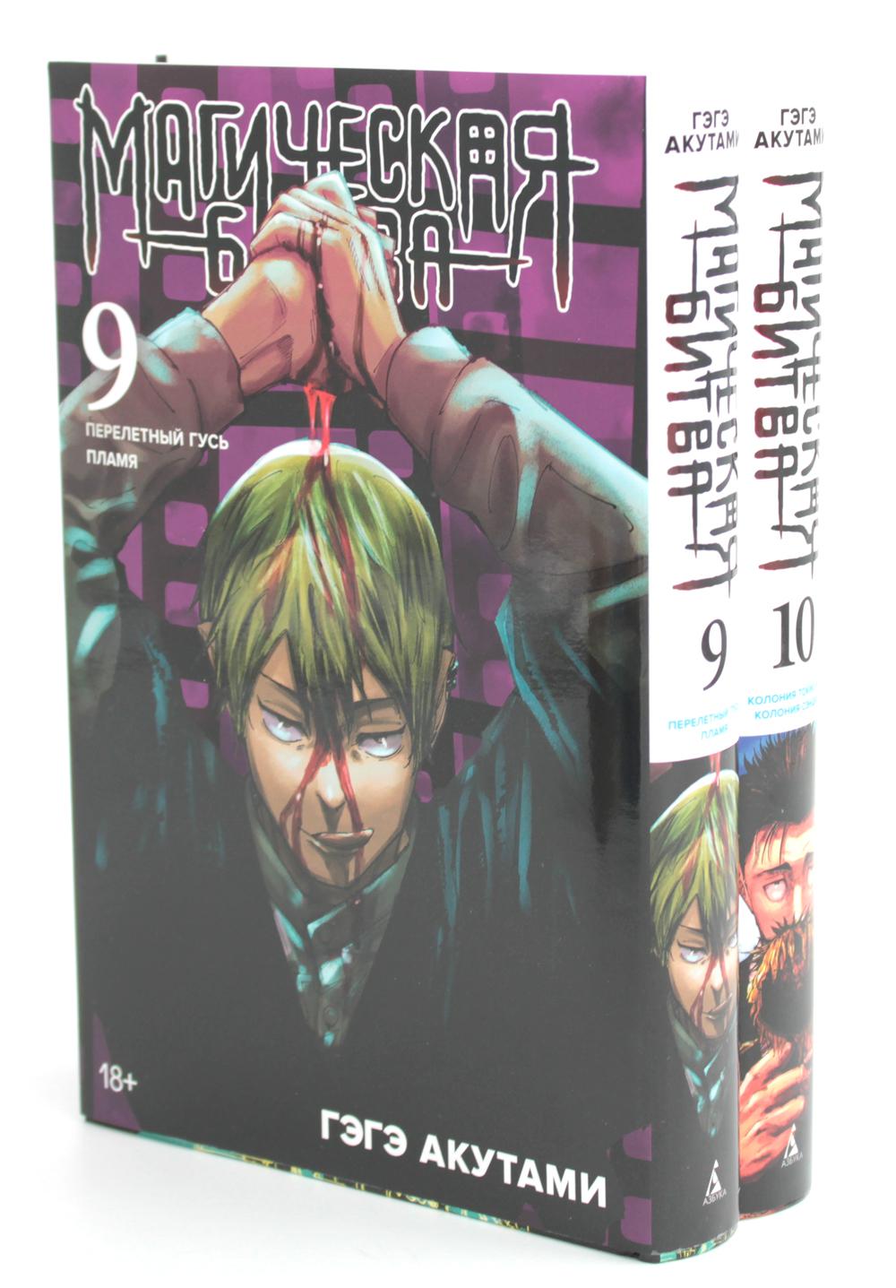 Комплект состоит из 9 и 10 томов манги Г. Акутами «Магическая битва». В девятом томе масштабная битва в районе Сибуя осталась позади... Маги потерпели разгромное поражение, и на волю вырвалась армия злобных духов, погрузившая Токио в хаос. Кроме того, проклинатель по имени Кэндзяку пробудил в тысяче людей магические способности, чтобы привести свой коварный план в жизнь. Юдзи Итадори и его товарищи спешат остановить негодяя, но получится ли у них? Ведь теперь, когда Сатору Годзё, могущественный из магов, запечатан во Вратах Заключения, заклинателям остается полагаться только на собственные силы... В десятом томе «смертельная миграция» набирает обороты! Студенты магического колледжа быстро приходят к выводу, что нельзя терять ни минуты: если они хотят сорвать план Кэндзяку, им придется принять участие в его жестокой игре. Юдзи Итадори и Мэгуми Фусигуро отправляются в колонию Токио № 1, где надеются заручиться поддержкой Хигурумы, одного из сильнейших игроков. Но не успевают заклинатели оказаться на территории проведения игры, как на них нападают другие участники, жаждущие крови!..| Издательство | Азбука |