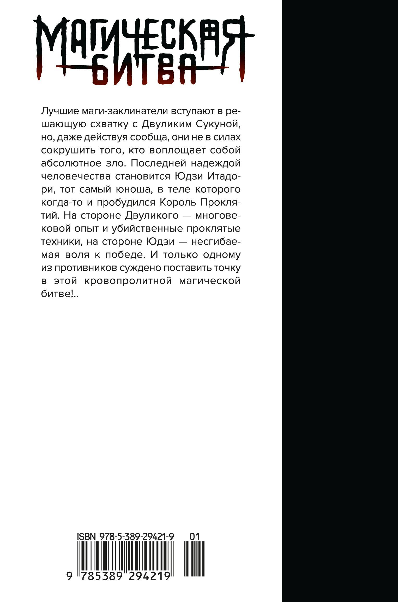 Лимитированный тираж финального тома манги «Магическая битва» + открытка! Лучшие маги-заклинатели вступают в решающую схватку с Двуликим Сукуной, но, даже действуя сообща, они не в силах сокрушить того, кто воплощает собой абсолютное зло. Последней надеждой человечества становится Юдзи Итадори, тот самый юноша, в теле которого когда-то и пробудился Король Проклятий. На стороне Двуликого - многовековой опыт и убийственные проклятые техники, на стороне Юдзи - несгибаемая воля к победе. И только одному из противников суждено поставить точку в этой кровопролитной магической битве!.. Открытка с Итадори и Сукуной в подарок* *Готовая открытка может незначительно отличаться от изображенной на картинках.