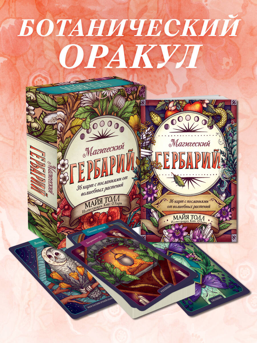 Позвольте мудрости Природы вести вас по жизни! «Магический гербарий» травницы Майи Толл и художницы Кейт O`Хара - Оракул, посвященный таинственным свойствам 36 необыкновенных трав, плодов и цветов. Чему мы можем или должны научиться у них? Стойкости. Терпению. Уверенности в себе. Оптимизму и способности радоваться каждому моменту. Разложите карты - и получите свой духовный урок, покровительство и помощь Природы. Оракул «Магический гербарий» - это: • 36 красочных карт с изображениями таинственных растений, которые делятся с вами своей силой и мудростью. • Руководство с толкованиями всех карт и правилами работы с колодой. • Авторские расклады, созданные специально для этого Оракула. Майя Толл провела целый год в Ирландии, изучая у ирландской травницы ремесло целителя и помогая как людям, так и животным. Сейчас она помогает женщинам обрести связь со своим духовным началом через соприкосновение с ритмами природы. Кроме того, Майя Толл - основательница и владелица магазина натуральных продуктов.| Издательство | ООО "Издательство "Эксмо" |