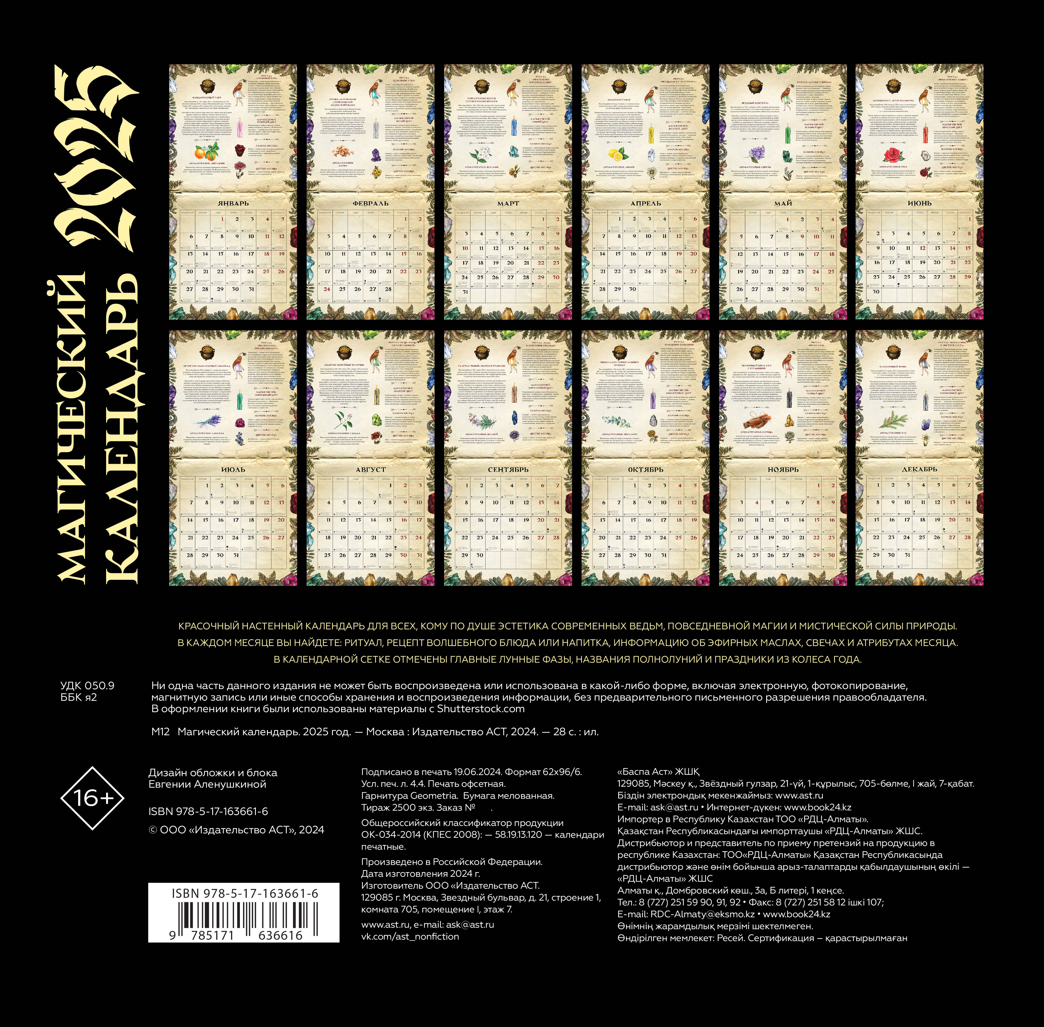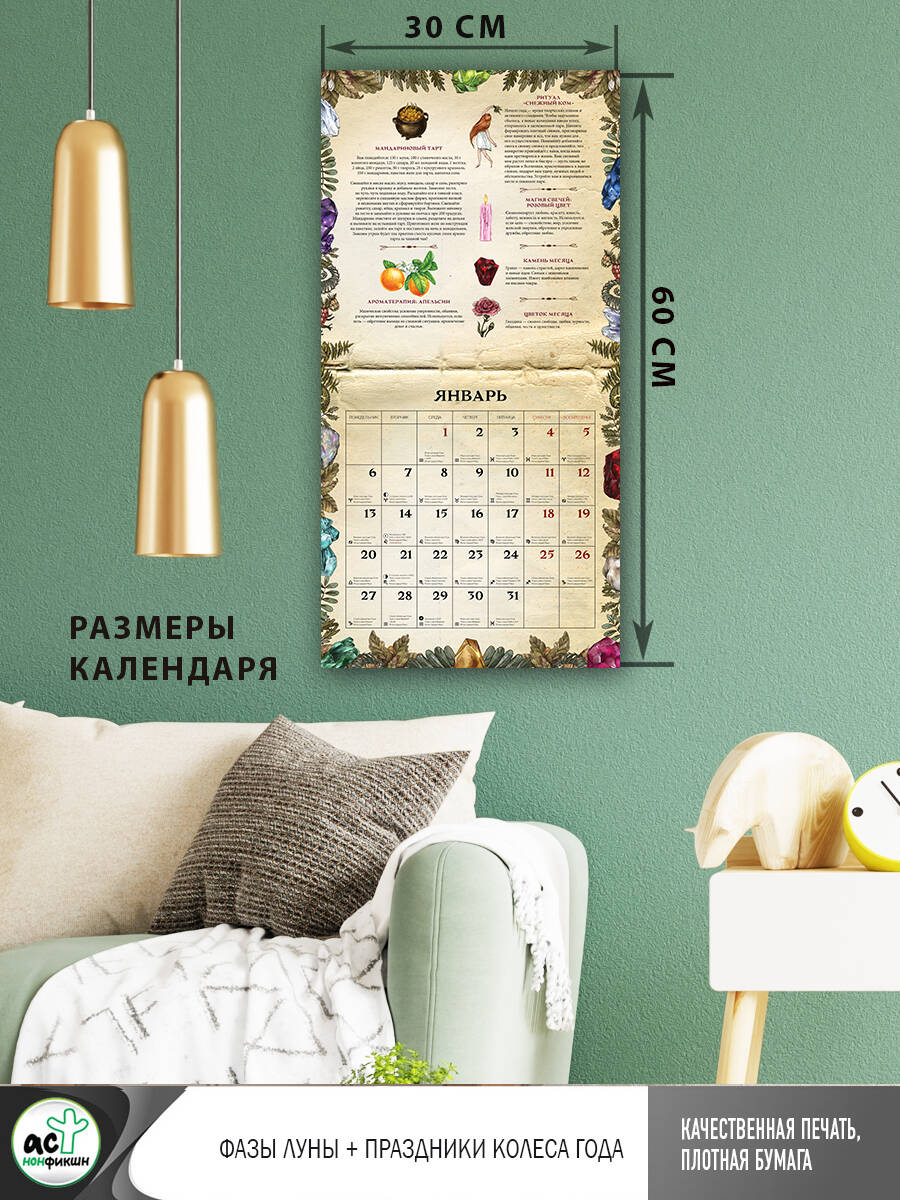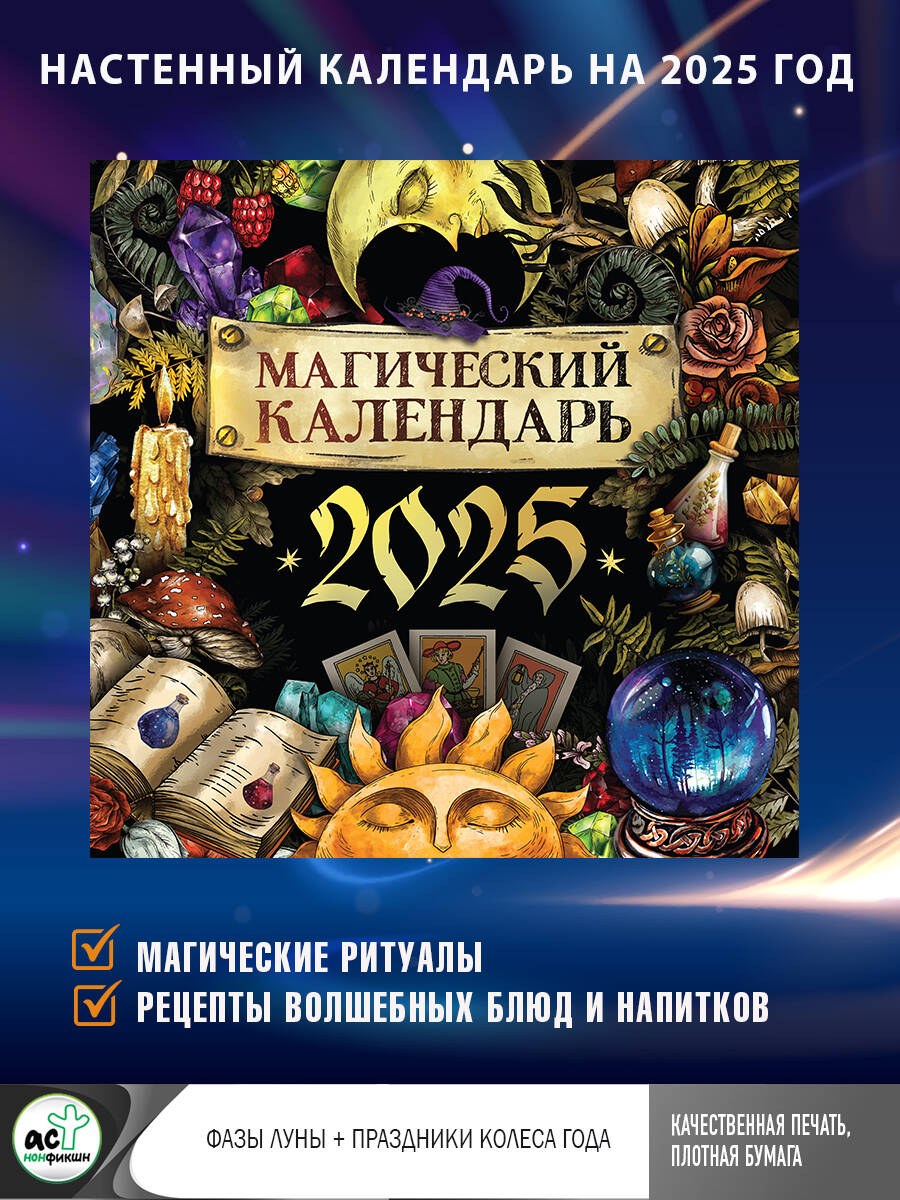 Красочный настенный календарь для всех, кому по душе эстетика современных ведьм, повседневной магии и мистической силы природы. В каждом месяце вы найдете: ритуал, рецепт волшебного блюда или напитка, информацию об эфирных маслах, свечах и атрибутах месяца. В календарной сетке отмечены главные лунные фазы, названия полнолуний и праздники из Колеса года.| Издательство | Издательство "АСТ" |