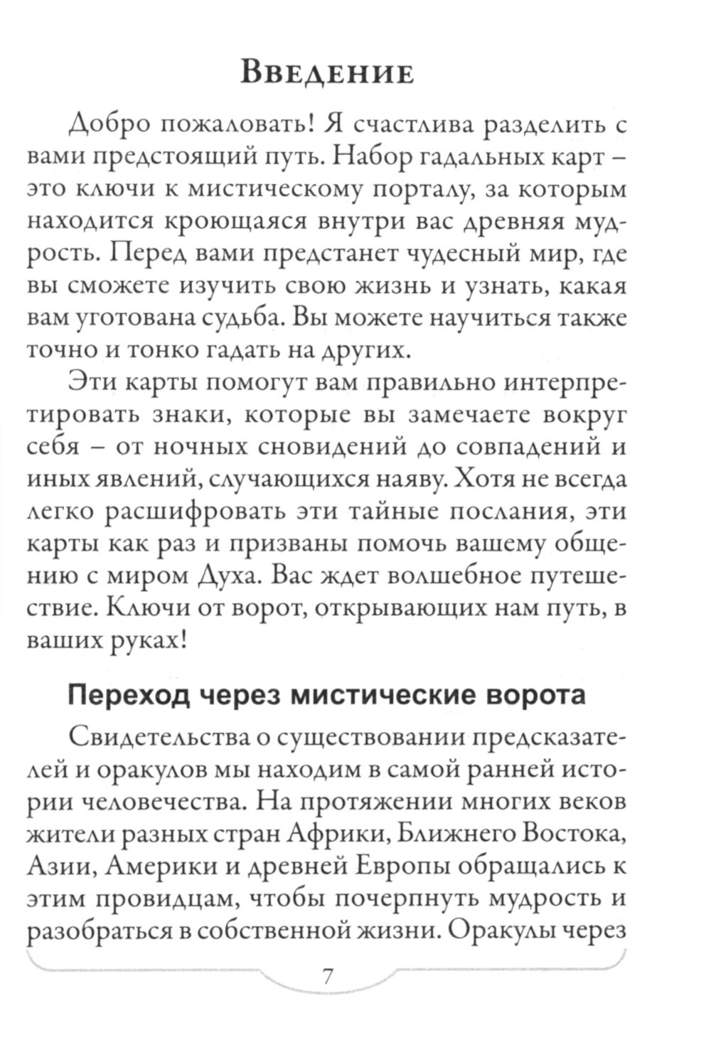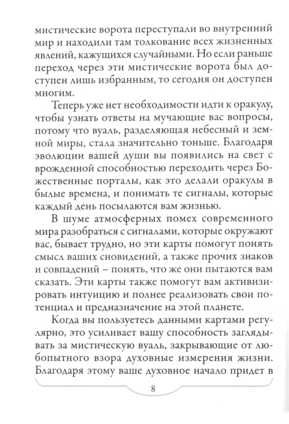 Эти карты представляют собой ключ к мистическим воротам, порталу, ведущему в священные потусторонние миры. Перед вами откроется чудесный мир, где вы сможете изучить свою жизнь и узнать, какая судьба вам уготована. Также они помогут постичь смысл знаков и символов, которые вы видите во сне и наяву. Каждая из 44 карт содержит послание, позволяющее быстро и четко понять, что хочет сказать вам Вселенная. А с помощью прилагаемой инструкции вы сможете получать и легко интерпретировать сообщения не только для себя, но и для своих близких.| Издательство | Попурри |