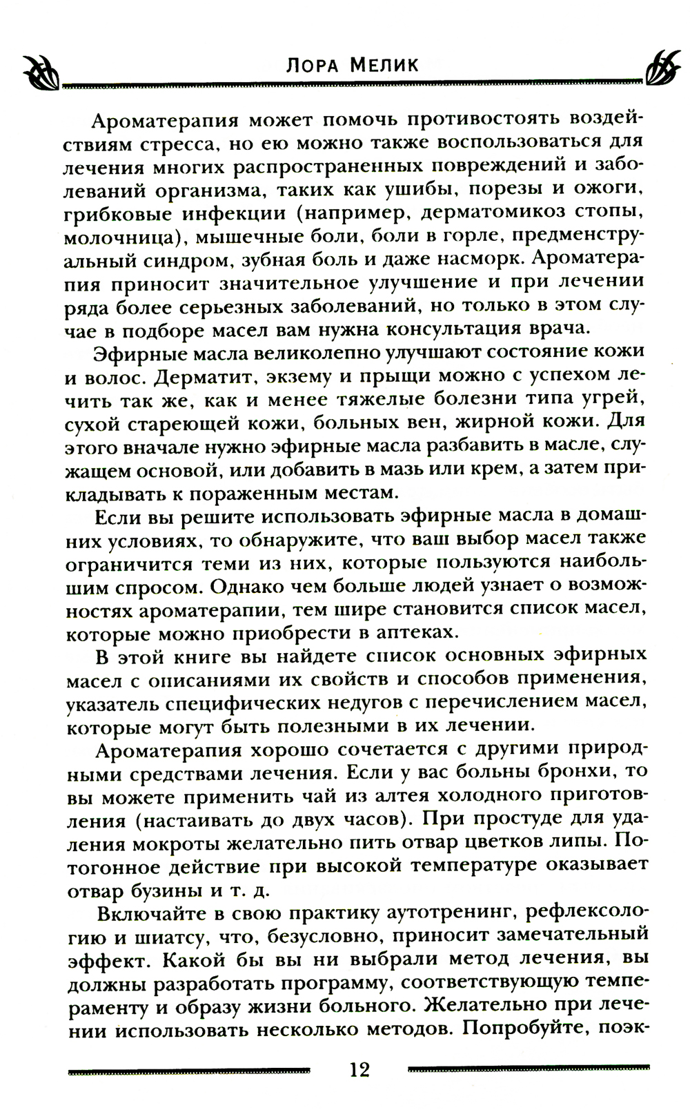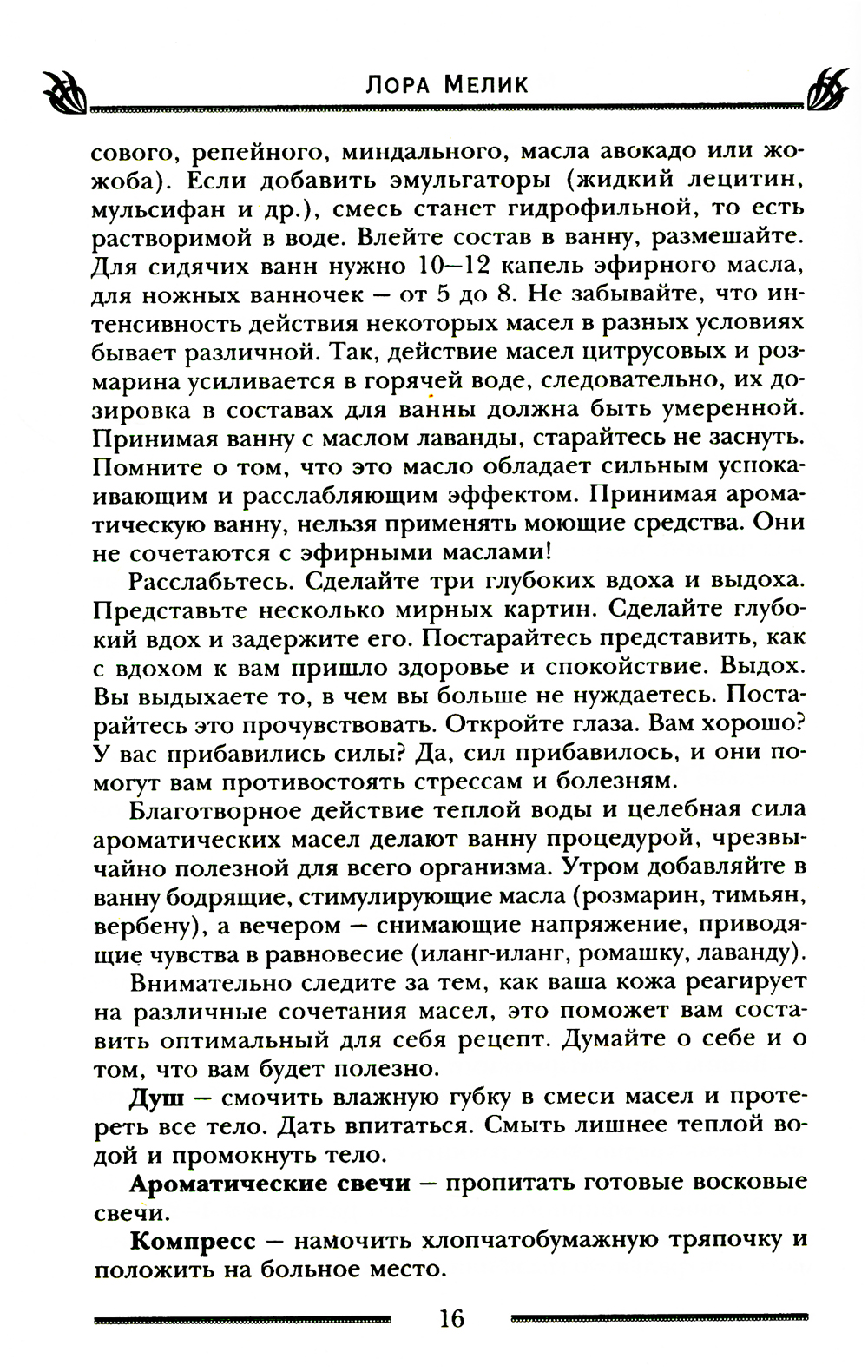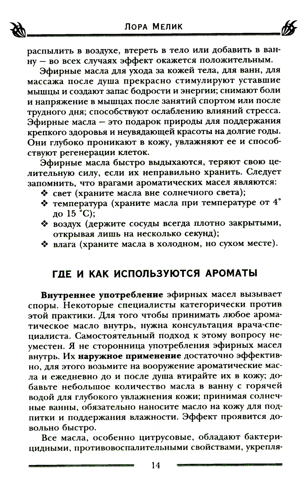 Бесконечно огромна кладовая матушки-природы. Она одаривает нас травами, цветами, плодами, а волшебное благоухание растений может потягаться в эффективности с целебными настоями и отварами. Добываемые из лечебных растений эфирные масла пригодятся везде: ароматизировать помещение, сделать духи, шампунь, маску для лица, массажное масло, ингаляцию, принять расслабляющую ванну или тонизирующий душ. Запахи воздействуют напрямую на центральную нервную систему и могут творить чудеса, избавляя от болезней, стресса, напряжения, бессонницы, улучшая настроение и повышая работоспособность. У знаков зодиака и цветов радуги тоже есть соответствующие им запахи, как и у влияющих на вашу жизнь планет. Главное - подобрать аромат, который подойдет лично вам, подарит радость и окажет положительное магическое влияние на вашу жизнь, в чем и поможет эта книга.