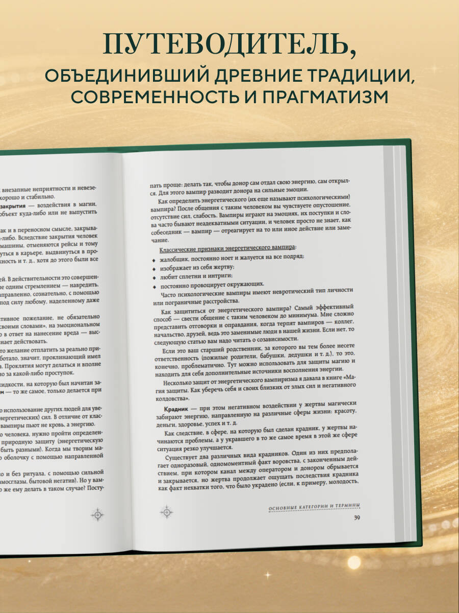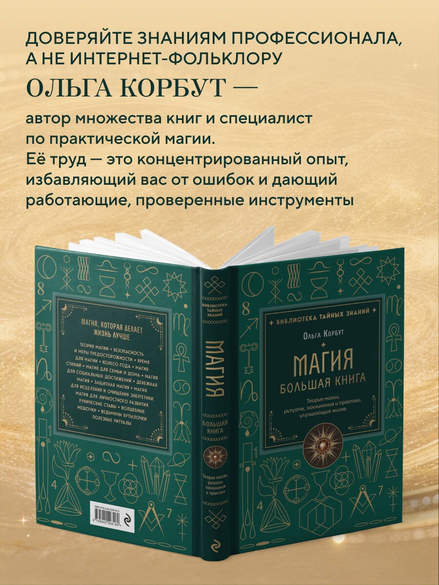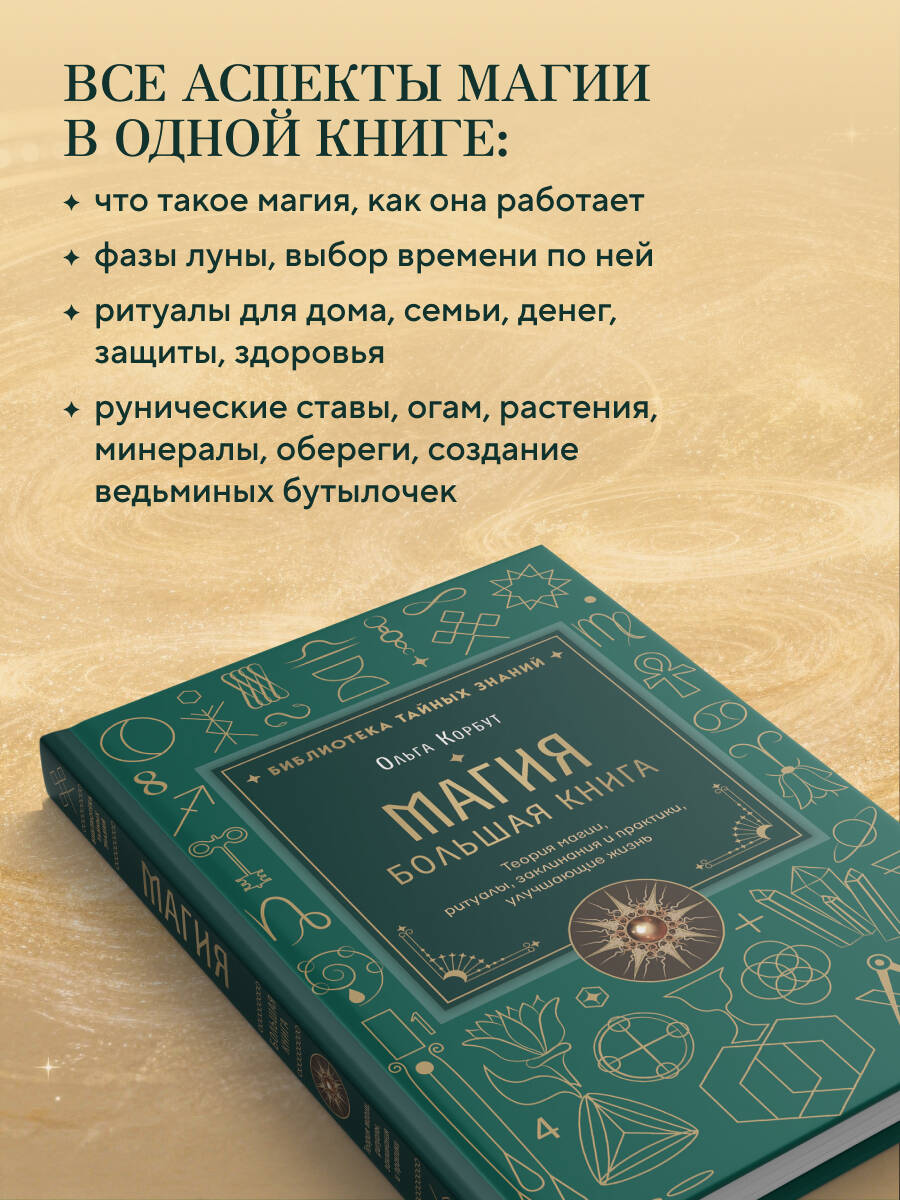 «Магия. Большая книга» Ольги Корбут, рунолога, специалиста по практической магии и автора более десятка книг, станет вашим надежным путеводителем по миру магии, объединившим в себе древние традиции, современные реалии и трезвый практичный подход. Книга включает в себя как новые материалы, так и лучшие практики из серии книг «Магия для жизни». В их числе - и теоретические основы магической работы, и практические рекомендации. «Магия. Большая книга» - это: • базовые правила работы магии и ее применения; • техника магической безопасности; • энергетическая структура человека; • основные этапы ритуалов; • правильное время для магических практик, влияние фаз Луны, дней недели и времен года на магию; • магия стихий и работа с энергиями природы; • обряды для защиты и практики для финансового благополучия; • магия для семьи и дома; • перечни полезных магических растений и минералов; • рекомендации по работе с руническими ставами и огамом. Книга будет полезна как новичкам, так и опытным практикам.| Издательство | ООО "Издательство "Эксмо" |