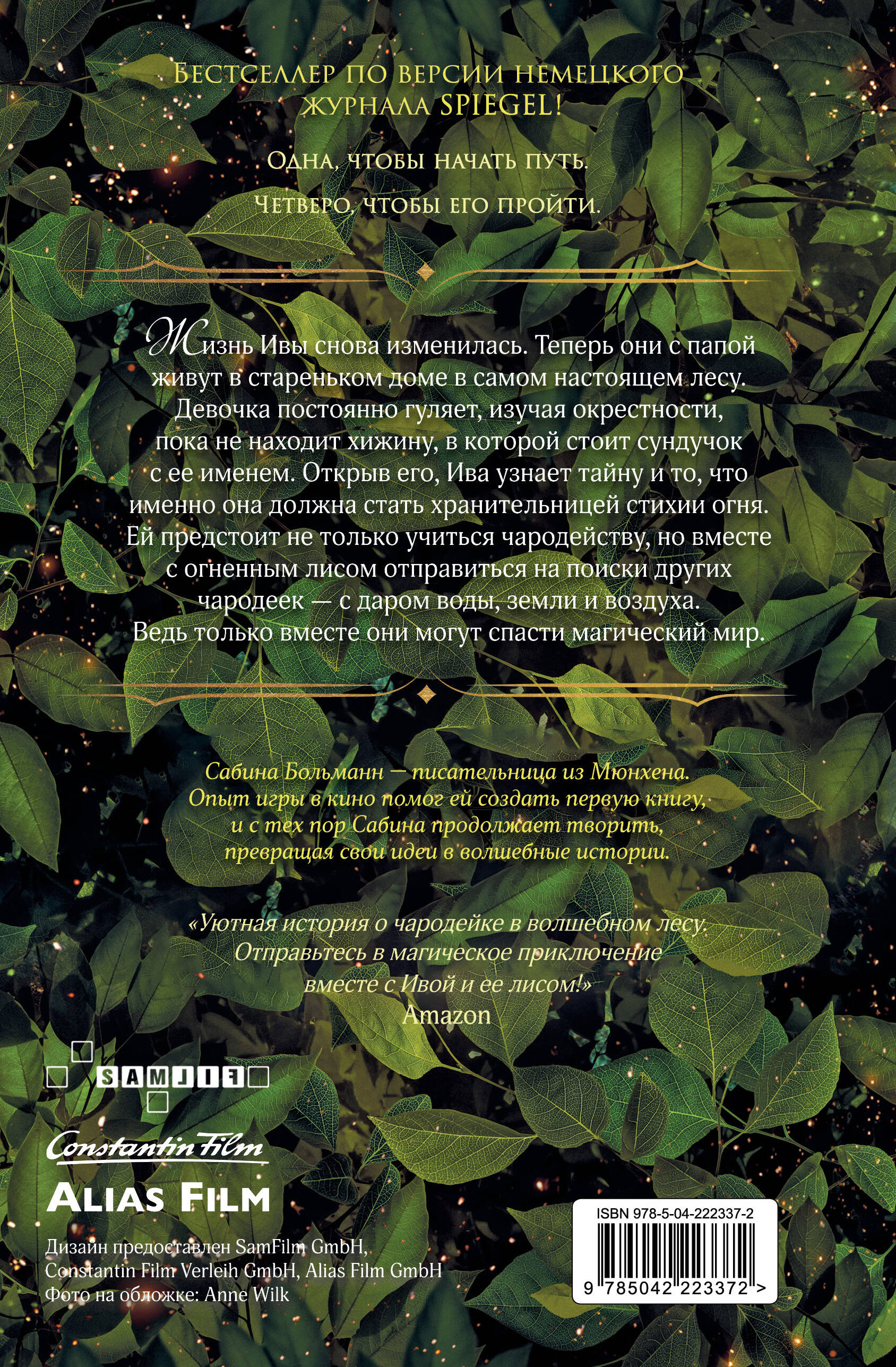 Читайте книгу - смотрите фильм! «Магия четырех стихий» на экранах! Следуй за огненным лисом и спаси волшебный мир! Сабина Больманн - автор бестселлеров, переведённых на многие языки! «Магия четырех стихий» - это волшебная сказка, где магия существует по-настоящему. Жизнь Ивы снова изменилась. Теперь они с папой живут в стареньком доме в самом настоящем лесу. Девочка постоянно гуляет, изучая окрестности, пока не находит хижину, в которой стоит сундучок с ее именем. Открыв его, Ива узнает тайну и то, что именно она должна стать хранительницей стихии огня. Ей предстоит не только учиться чародейству, но вместе с огненным лисом отправиться на поиски других чародеек с даром воды, земли и воздуха. Ведь только вместе они могут спасти магический мир. Очень атмосферное фэнтези: таинственный лес, дружба четырёх чародеек и много магии! Эта история поможет подросткам поверить в свои силы и собственную уникальность. Полностью иллюстрированное издание, погрузитесь в приключение!| Издательство | ООО "Издательство "Эксмо" |