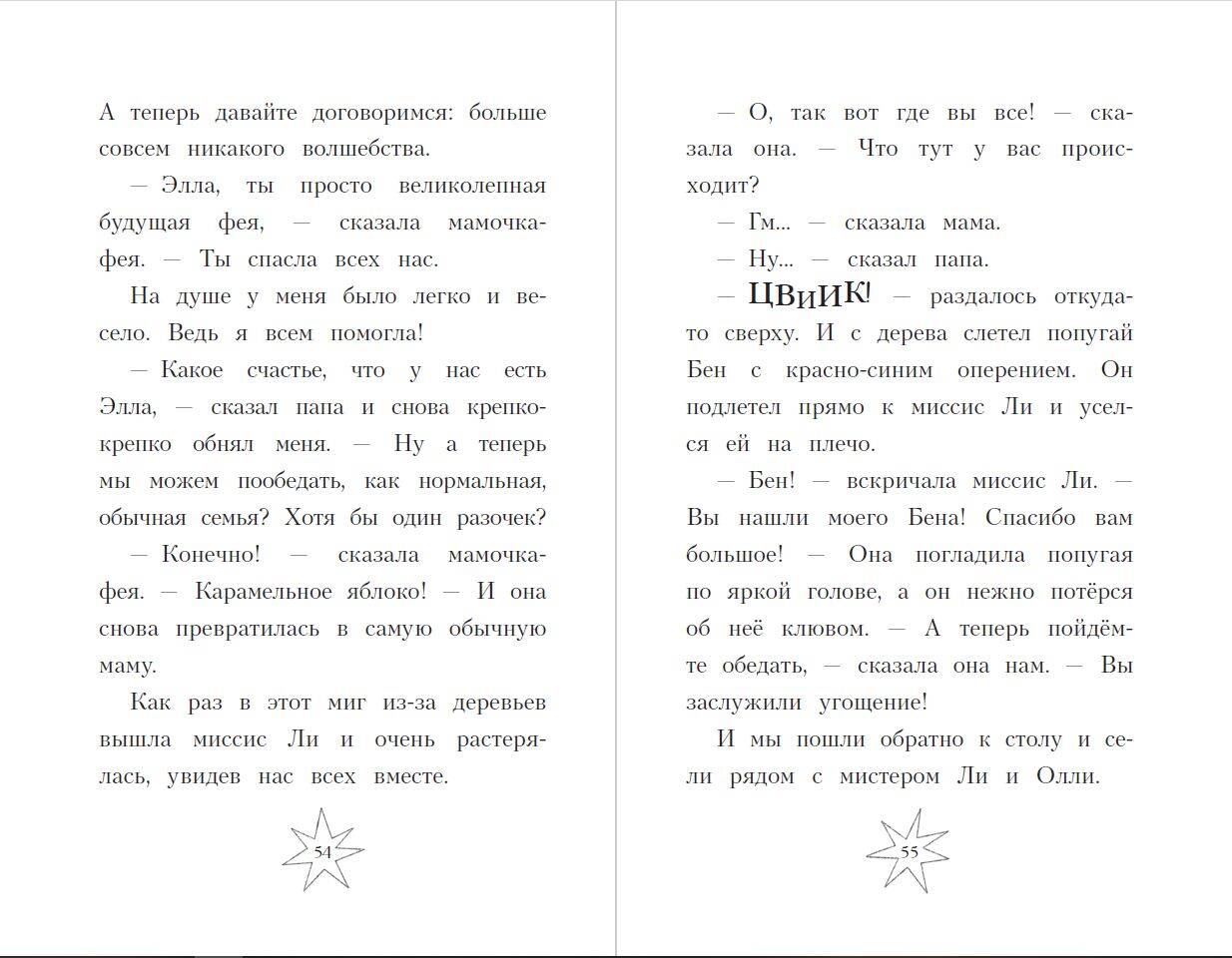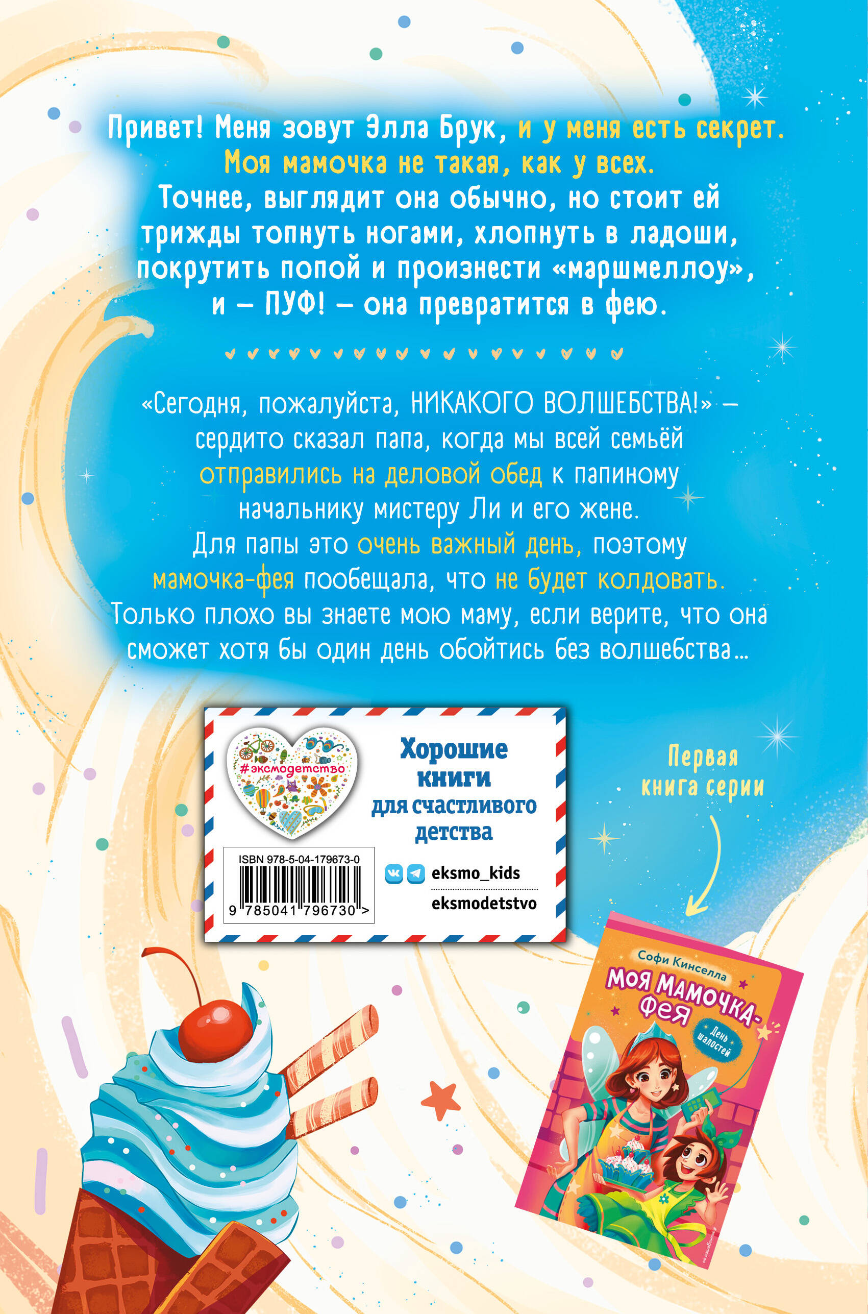 «Сегодня, пожалуйста, НИКАКОГО ВОЛШЕБСТВА!» - сердито сказал папа, когда мы всей семьёй отправились на деловой обед к папиному начальнику мистеру Ли и его жене. Для папы это очень важный день, поэтому мамочка-фея пообещала, что не будет колдовать. Только плохо вы знаете мою маму, если верите, что она сможет хотя бы один день обойтись без волшебства… Серия «Моя мамочка - фея» - это очень оптимистичные и милые истории с капелькой магии! Софи Кинселла прекрасный рассказчик и мастер создания хорошего настроения. К тому же, у неё самой двое детей, и она не понаслышке знает, какими они бывают непоседами. А совместное чтение - это чудесный способ для мамы и дочки провести время. Ведь главные героини серии, Элла и её мама-фея, тоже всё делают сообща, особенно устраняют последствия волшебных экспериментов! Добавь немного магии в повседневную жизнь. «Детская книга Софи Кинселлы напоминает коробку шоколадных конфет ко Дню святого Валентина». - USA Today