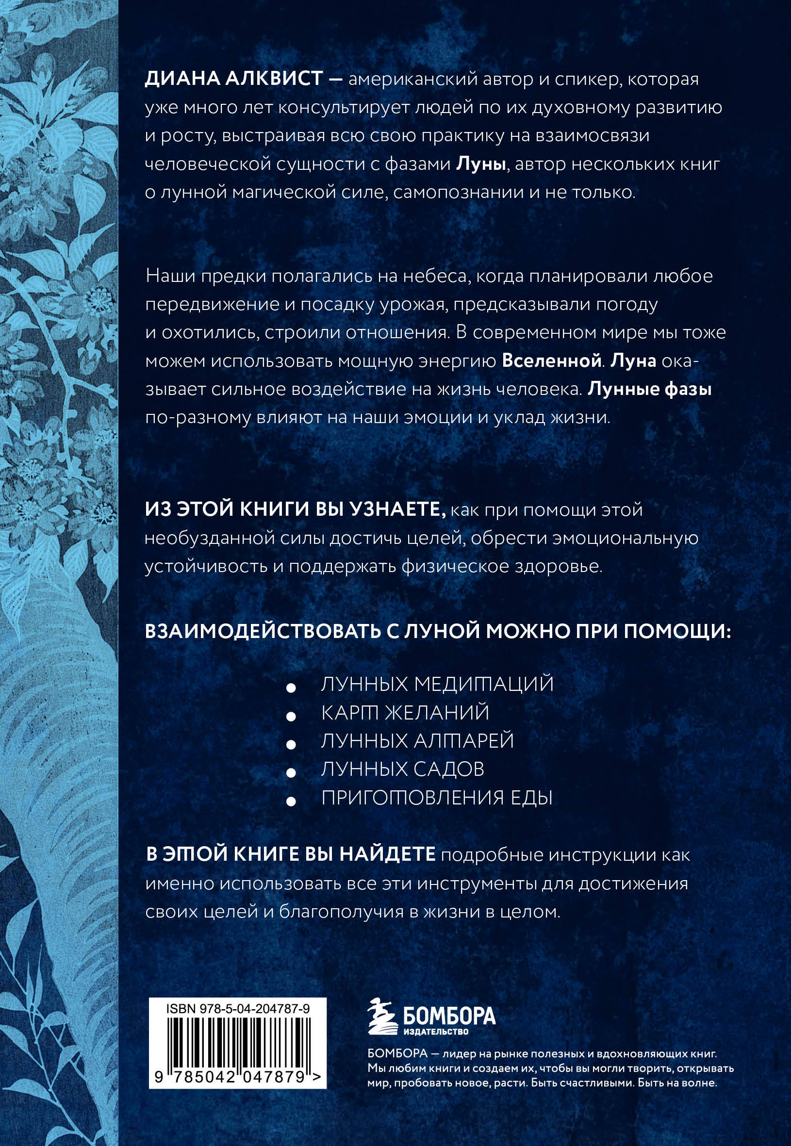 ДИАНА АЛКВИСТ - американский автор и спикер, которая уже много лет консультирует людей по их духовному развитию и росту, выстраивая свою практику на взаимосвязи с человеческой сущности с фазами Луны, автор нескольких книг о лунной магической силе, самопознании и не только. Наши предки полагались на небеса, когда планировали любое передвижение и посадку урожая, предсказывали погоду и охотились, строили отношения. В современном мире мы тоже можем использовать мощную энергию Вселенной. Луна оказывает сильное воздействие на жизнь человека. Лунные фазы по-разному влияют на наши эмоции и уклад жизни. ВЗАИМОДЕЙСТВОВАТЬ С ЛУНОЙ МОЖНО ПРИ ПОМОЩИ: * ЛУННЫХ МЕДИТАЦИЙ * КАРТ ЖЕЛАНИЙ * ЛУННЫХ АЛТАРЕЙ * ЛУННЫХ САДОВ * ПРИГОТОВЛЕНИЯ ЕДЫ В ЭТОЙ КНИГЕ ВЫ НАЙДЕТЕ подробные инструкции, как именно использовать все эти инструменты для достижения своих целей и благополучия в жизни в целом.| Издательство | ООО "Издательство "Эксмо" |
