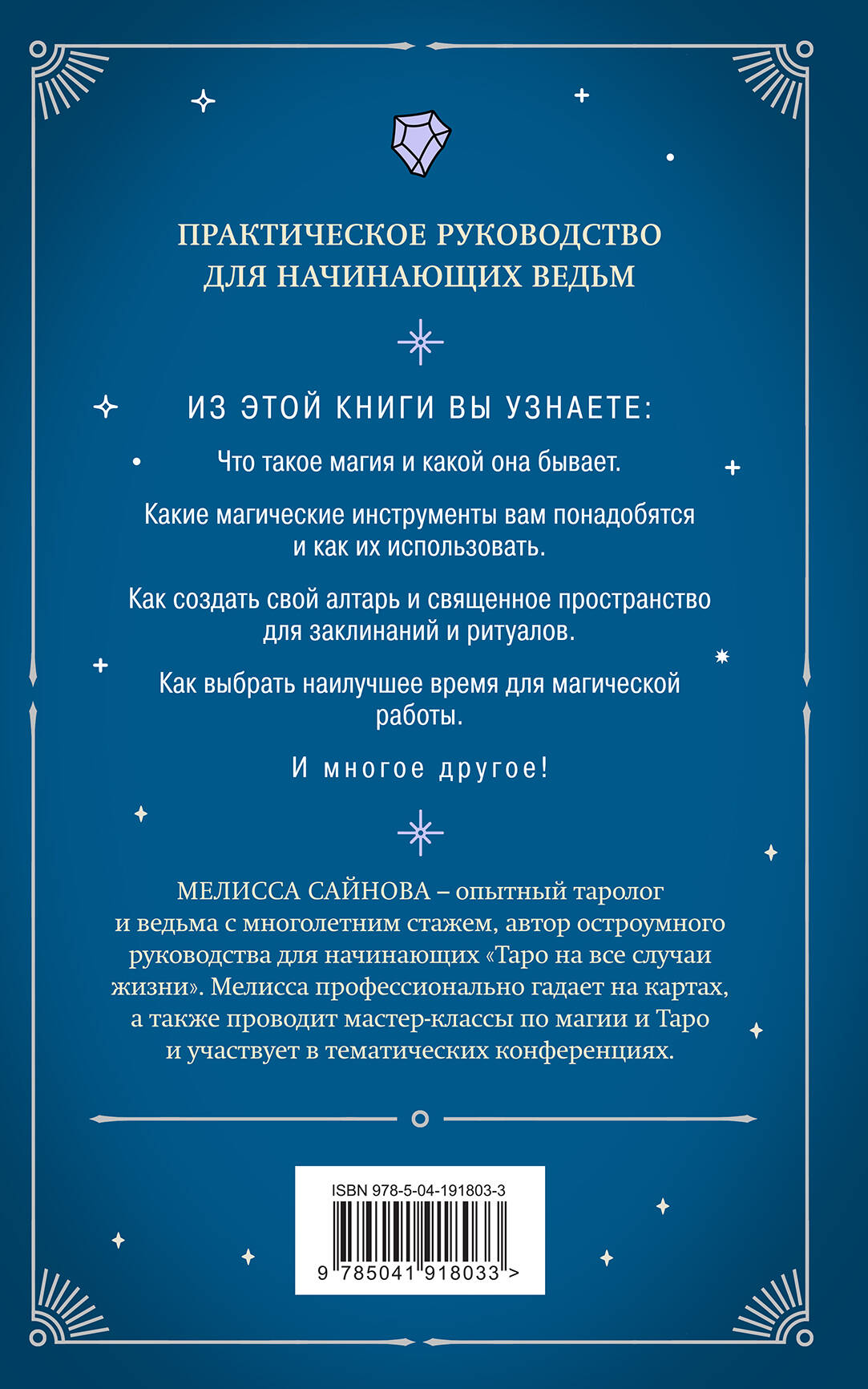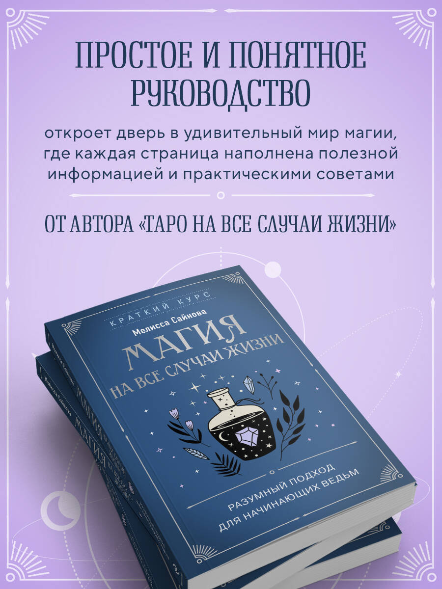 Практичная и позитивная книга Мелиссы Сайнова, автора популярного руководства «Таро на все случаи жизни», - идеальное начало для захватывающего путешествия в мир магии, древней и современной. Это простое и остроумное руководство для начинающих подойдет тем, кто верит в житейскую мудрость, опыт, разумный и взвешенный подход ко всему, даже к магическим практикам. Из этой книги вы узнаете: • Что такое магия, какой она бывает и как работает. • Какие магические инструменты вам понадобятся и как их использовать. • Как создать свой алтарь и священное пространство для заклинаний и ритуалов. • Как выбрать наилучшее время для магической работы. • Как при помощи различных заклинаний и ритуалов, включающих работу со свечами, кристаллами, картами Таро и стихиями, «прокачать» важнейшие сферы жизни. Мелисса Сайнова - опытный таролог и ведьма с многолетним стажем, автор остроумного руководства для начинающих «Таро на все случаи жизни». Мелисса профессионально гадает на картах, а также проводит мастер-классы по магии и Таро и участвует в тематических конференциях.| Издательство | ООО "Издательство "Эксмо" |