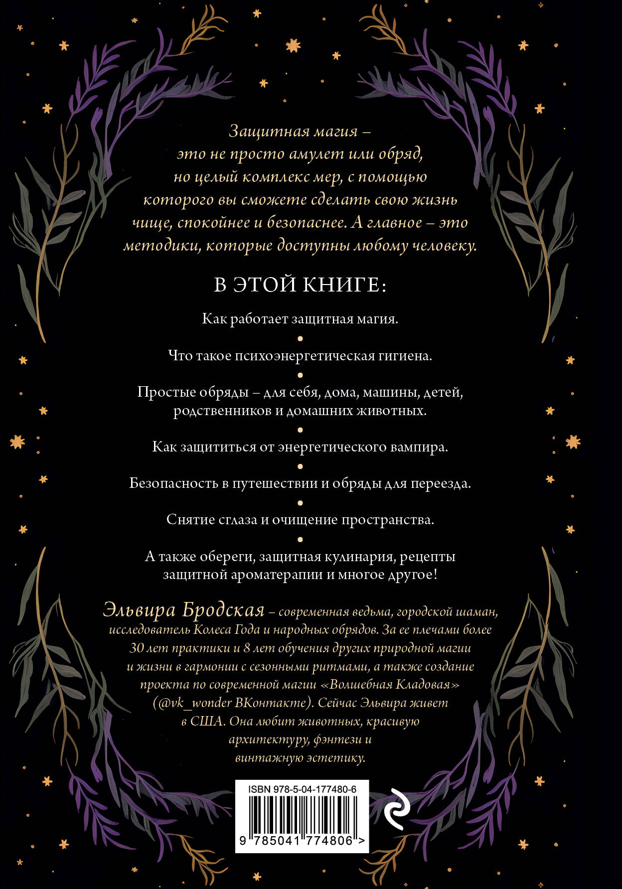 Защитная магия - это не просто амулет или обряд, но целый комплекс мер, с помощью которого вы сможете сделать свою жизнь чище, спокойнее и безопаснее. Методики, описанные в книге, подойдут начинающим, но также будут любопытны и для уже практикующих ведьм. Вы узнаете: - как работает защитная магия и что такое психоэнергетическая гигиена; - как магия очищения помогает в защитной магии; - простые обряды: для себя, дома, машины, детей, родственников и домашних животных; - кто такие энергетические вампиры и как от них можно защититься; - как поддерживать безопасность в путешествии и какие обряды подойдут для переезда; И многое другое! Эльвира Бродская - современная ведьма, городской шаман, исследователь Колеса Года и народных обрядов. За ее плечами - более 30 лет практики и 8 лет обучения других природной магии и жизни в соответствии с сезонными ритмами, а также создание проекта одной из крупнейших групп по современной магии «Волшебная Кладовая» (@vk_wonder ВКонтакте), которая существует более 10 лет. Сейчас Эльвира живет в США. Она любит животных, красивую архитектуру, фэнтези и винтажную эстетику.| Издательство | ООО "Издательство "Эксмо" |