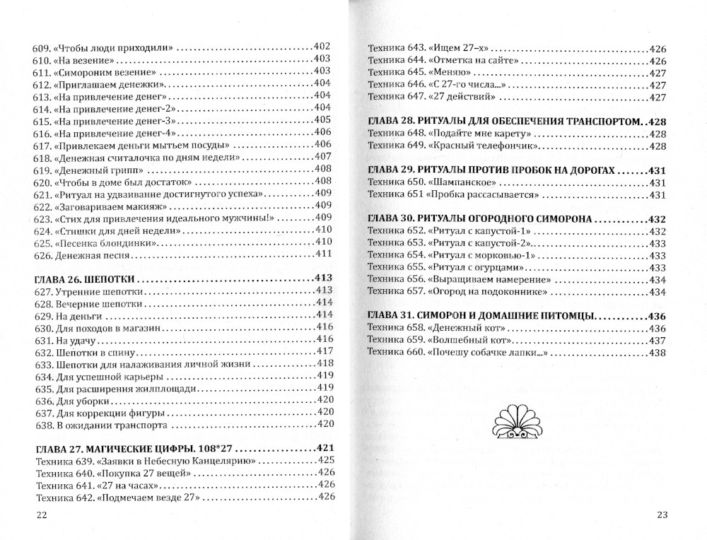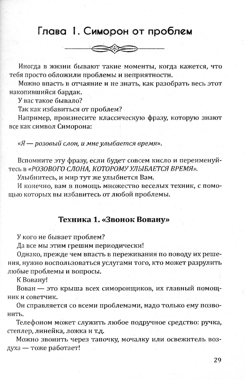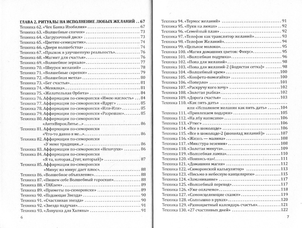 Дорогой мой читатель! Сейчас в Ваших руках самый большой в мире сборник ритуалов Симорон. Симоронские ритуалы - очень действенные и отлично работающие техники, которые способны изменить взгляд человека на привычный мир и перевернуть жизнь, трансформируя ее из тяжелой и невыносимой ноши в веселую, легкую и интересную игру. Волшебство Симорон не является магией в общепринятом значении. Оно не требует от человека энергетических затрат, не напрягает психику. Симоронские техники не могут причинить вреда никому, даже самому негативно настроенному человеку. Они лишь улучшают ваше личное качество жизни, помогают достигать намеченных целей и выполнять любые желания. Поэтому я называю эту книгу «инструкцией по применению позитива в жизни». И как исследователь «феномена долгожительства» могу Вас заверить в том, что Симорон не только техники по исполнению Желаний, но и тот ресурс, который дарит нам счастливые годы жизни! Улыбайтесь, счастливые люди!| Издательство | Амрита-Русь |