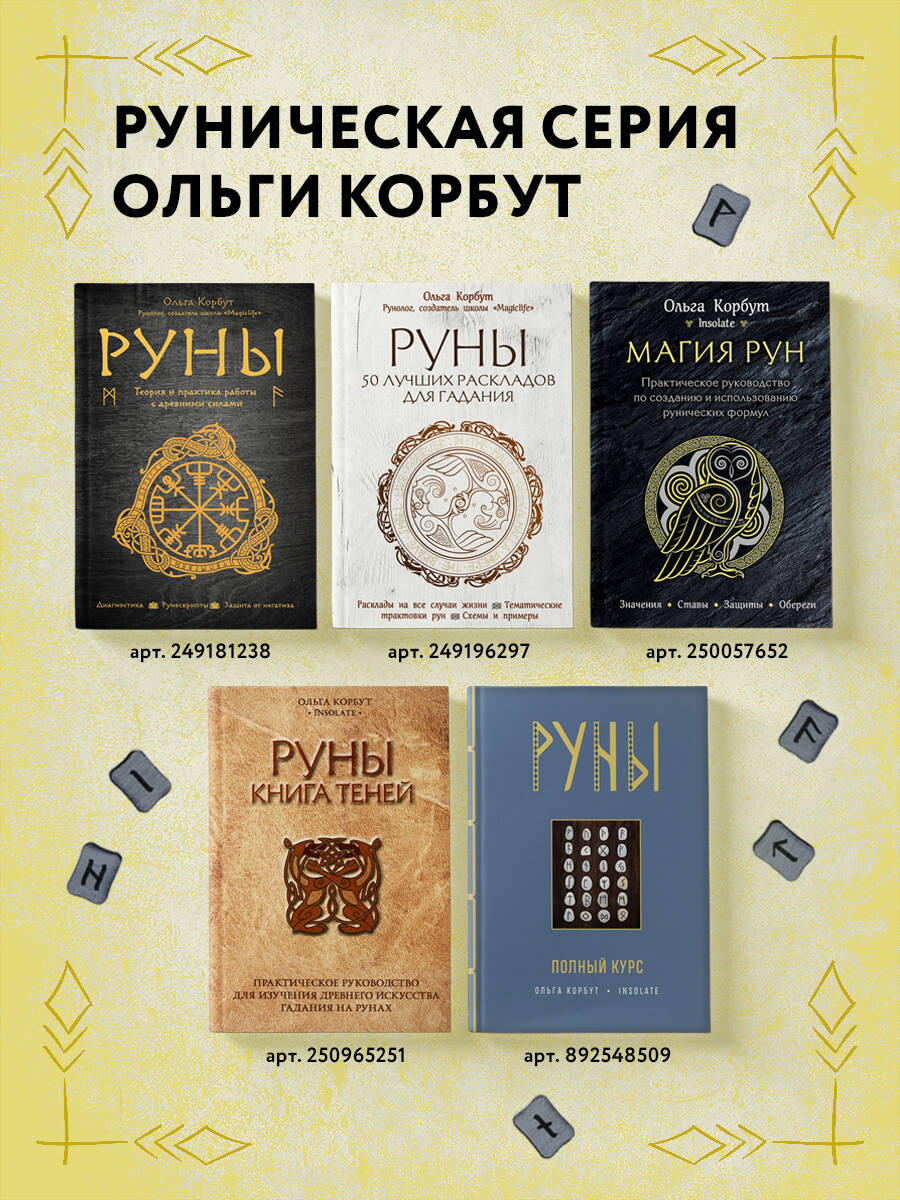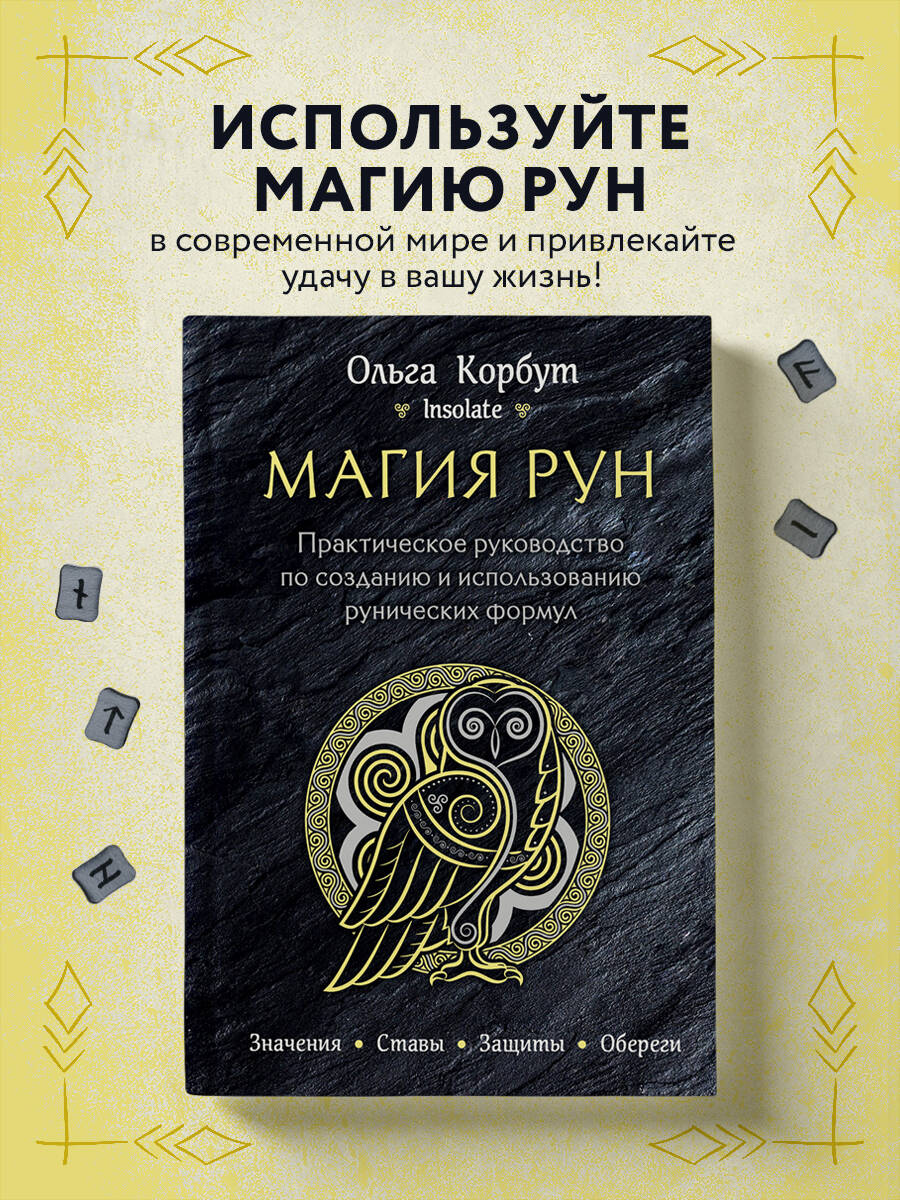 Эта книга расскажет вам, как использовать древнюю силу рун в наши дни для достижения успеха, защиты и развития данных вам способностей. Магия рун была открыта людям самим Одином, но так и не стала застывшей древностью. Ее сила по-прежнему огромна и способна менять жизни людей. Воспользуйтесь авторскими наработками Ольги Корбут, чтобы привлечь в свою жизнь благоприятные возможности, удачу и благотворные перемены. В этой книге вы найдете: • Значения рун Старшего Футарка в магической практике. • Создание рунескриптов и рунических вязей. • Правила работы с руническими формулами. • Более 60 рунических ставов для защиты от негатива, усиления творческих способностей, укрепления материального благополучия с подробными описаниями. «Ольге Корбут в очередной раз мастерски удалось решить сложнейшую задачу - адаптировать древнее знание для понимания и применения в решении социальных, психологических и духовных вопросов нашими современниками, не исказив сути и сохранив в чистоте традицию Рун». - Дарина Олейник, потомственная ясновидящая, космоэнергет, этнопсихолог, специалист по практической магии, специалист в области духовного целительства, психолог. Автор более 500 статей и книги «Путь силы» Ольга Корбут, также известная в Сети как Insolate, - эзотерик, рунолог, таролог, практикующий психолог. Создатель школы саморазвития «Мagiclife» и сообщества «Руны XXI», автор книг «Руны. Теория и практика работы с древними силами», «Руны. 50 лучших раскладов для гадания», автор обучающих курсов и семинаров по рунам, Таро, практической магии.| Издательство | ООО "Издательство "Эксмо" |