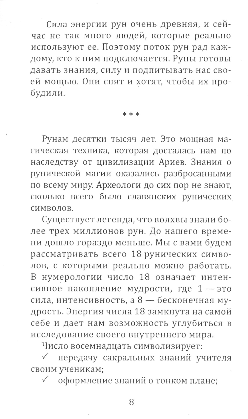Предлагаемая вам книга - это своеобразный учебник по практической работе с энергиями и потоками славянских рун. Обращаясь к определенной руне, человек устанавливает контакт с природной силой, представленной этим символом. Человек, работая с рунами, будет вязать полотно реальных событий, ведь всё в этом мире взаимосвязано. Из книги вы узнаете, как можно при помощи рун изменить окружающее вас пространство и время. Поймёте, что руническая магия вбирает в себя самую полную информацию - от повседневной до Космической. Научитесь входить в рунический поток, и работать в нем. При этом не нужно будет обращаться ни к каким современным волхвам. Родовая память приведёт вас к пониманию мудрости предков.