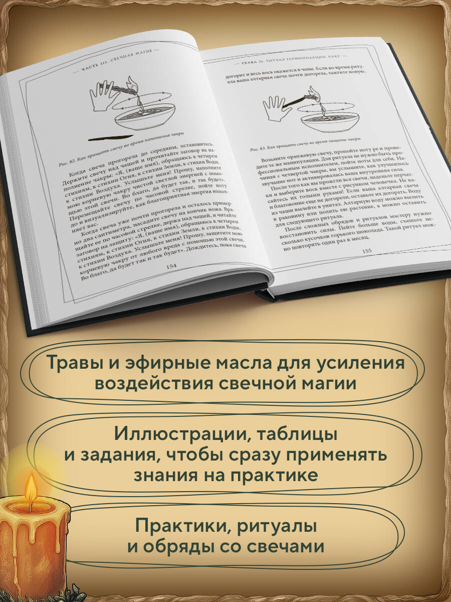 Самоучитель «Магия свечей» Ксении Срубас - книга о том, как создавать свечи своими руками, активировать их и использовать во благо себе и своим близким, наполняя свою жизнь светом и делая ее ярче. В этой книге вы найдете: • Информацию о магии стихий и магии огня. • Материалы, необходимые для изготовления свечей. • Травы и эфирные масла для усиления воздействия свечной магии. • Способы создания различных видов магических свечей. • Практики, ритуалы и обряды со свечами. • Свечи для очищения, любви, укрепления финансов, гармонизации чакр, открытия дорог, концентрации энергии - и многого другого. • Наглядные иллюстрации, полезные таблицы и практические задания, помогающие закрепить знания и начать магическую работу со свечами.| Издательство | ООО "Издательство "Эксмо" |
