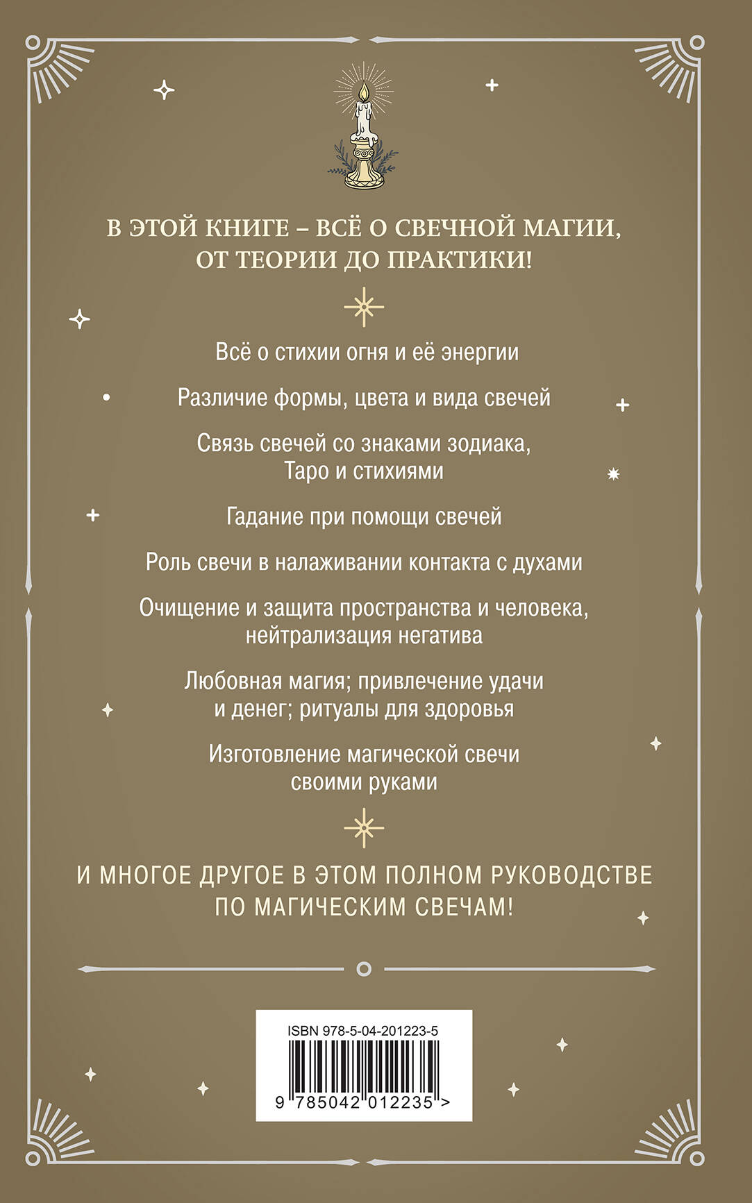 Погрузитесь в таинственный мир свечной магии с этим исчерпывающим пособием, охватывающим все аспекты от основ до продвинутых техник. В этой книге - всё о свечной магии, от теории до практики! - Всё о стихии огня и её энергии. - Различие формы, цвета и вида свечей. - Связь свечей со знаками Зодиака, Таро и стихиями. - Гадание при помощи свечей. - Роль свечи в налаживании контакта с духами. - Очищение и защита пространства и человека, нейтрализация негатива. - Любовная магия; привлечение удачи и денег; ритуалы для здоровья. - Изготовление магической свечи своими руками. И многое другое в этом полном руководстве по магическим свечам!| Издательство | ООО "Издательство "Эксмо" |