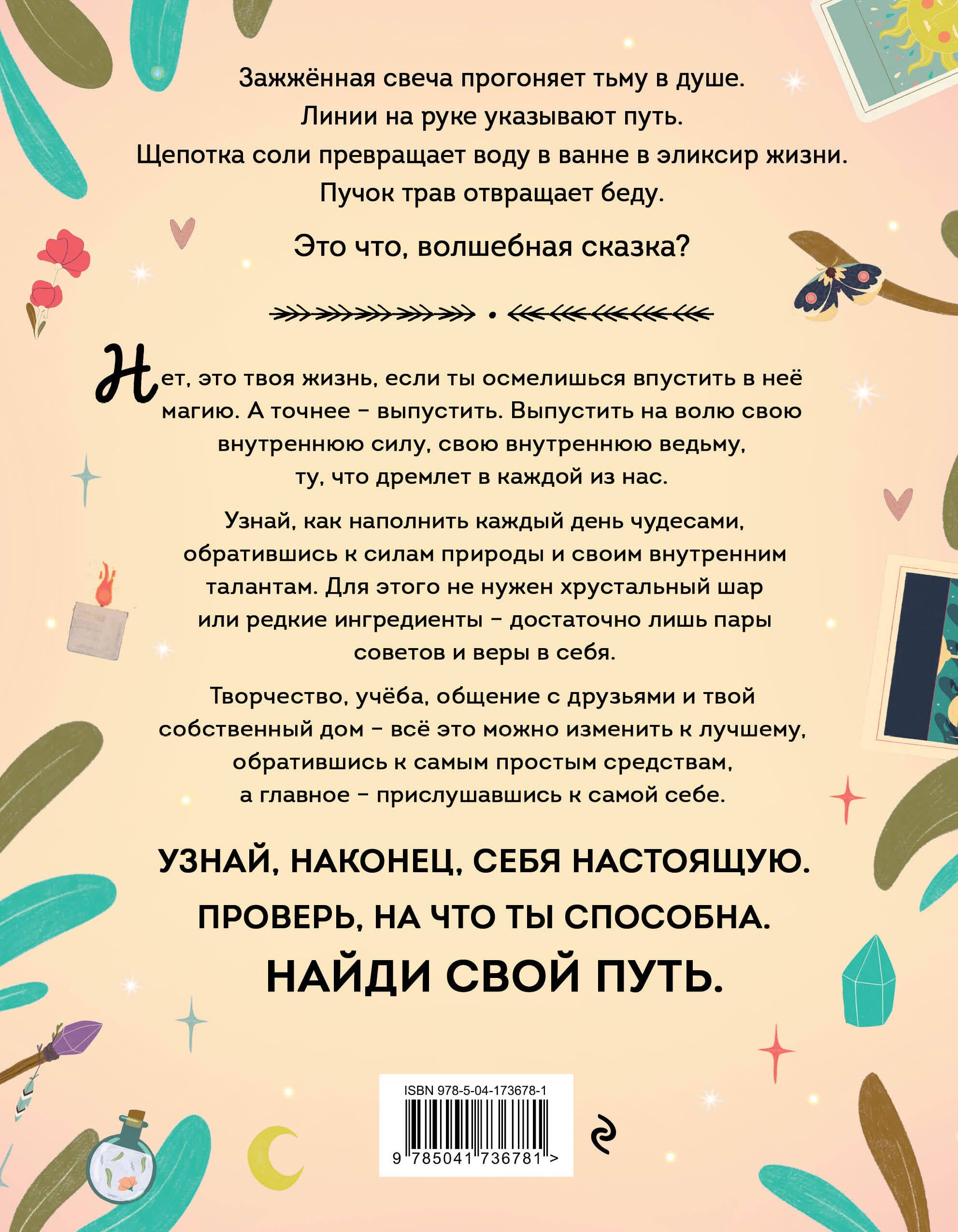 Эта книга для тебя, если… • Если ты всегда чувствовала, что внутри тебя живёт могучая сила, но не знала, как её пробудить. • Если ты веришь, что сила намерения может изменить мир. • Если ты ищешь свой путь в жизни. • Если ты доверяешь себе и своей интуиции (или хочешь этому научиться). • Если ты всегда хотела, чтобы в твоей жизни было чуть больше чудес. Амброзия Хауторн - ведьма со стажем, и она приглашает тебя в мир современной повседневной магии, где даже фитнес можно превратить в колдовской ритуал. Её книга расскажет, как с помощью самых простых средств, которые можно найти в своём кухонном шкафу, наладить отношения с близкими, поддержать свою красоту и здоровье и сделать жизнь гармоничнее и интереснее. В этой книге нет сложных рецептов, зато её советы ведут к пониманию себя и своего места в мире. А потрясающе эстетичные иллюстрации с первой страницы погружают в непередаваемую атмосферу волшебства и тайны. Книга придётся по душе читательницам от 13 лет.| Издательство | ООО "Издательство "Эксмо" |