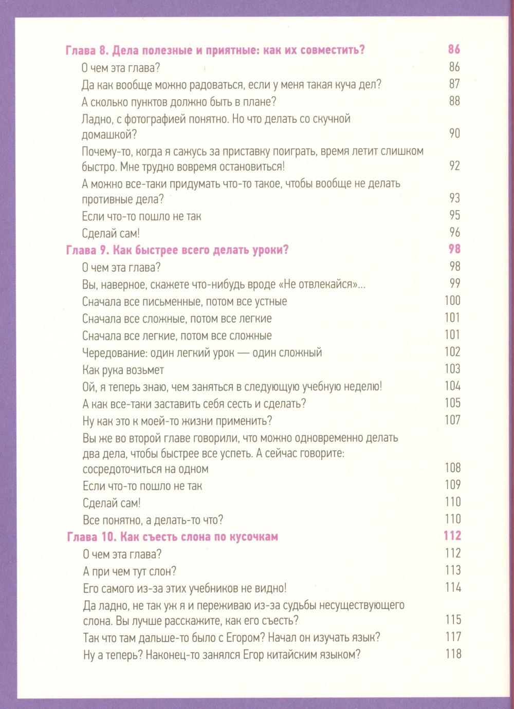 Эта книга - полезный гайд для подростков по управлению временем: как эффективно организовать дела на день, делать домашку быстрее и справляться с нагрузками без стресса, а также не забывать про хобби и отдых.| Издательство | Клевер-Медиа-Групп |