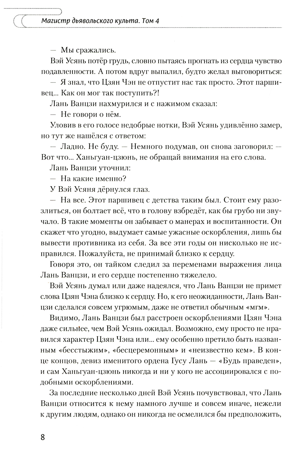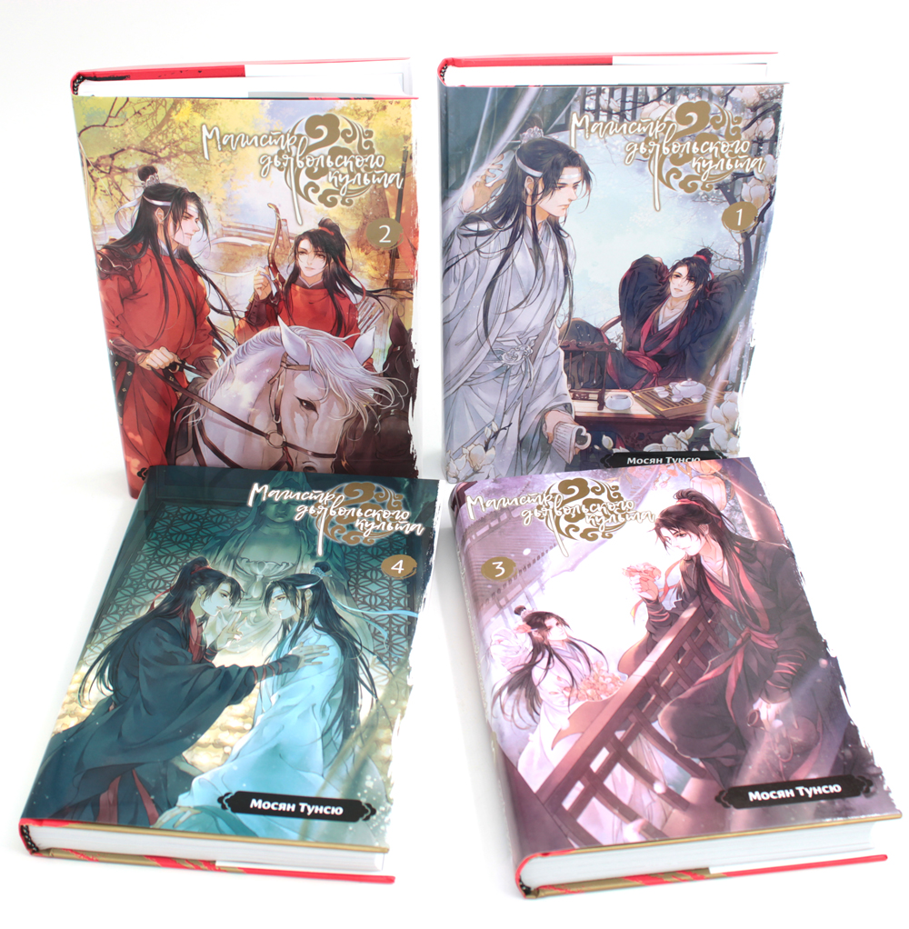Комплект состоит из четырех книг Мосян Тунсю «Магистр дьявольского культа». В первой книге старейшина Илин, Вэй Усянь, погиб во время осады горы Луаньцзан, и смерть его принесла бесконечную радость и ликование... Однако минуло тринадцать лет, и кто-то решил призвать дух Вэй Усяня, позволив ему возродиться в этом мире! Страшная гибель должна была поставить точку в его истории. Но после неожиданного возвращения Вэй Усянь вновь сталкивается с кланами заклинателей, которые когда-то пошли на него войной. И что совсем невероятно: всегда серьёзный и невозмутимый Лань Ванцзи из Ордена Гусу Лань оставляет Вэй Усяня при себе, терпит дерзкие выходки и даже позволяет забираться в свою постель! Какие же цели преследует один из прославленных заклинателей, Ханьгуан-цзюнь, Лань Ванцзи? И что теперь с этим делать самому Вэй Усяню? Во второй книге Вэй Усянь применяет «Сопереживание» к призраку девушки и становится свидетелем трагедии, которая разворачивается в городе И между Сюэ Яном, Сяо Синчэнем и Сун Цзычэнем. Их визит в город И раскрывает немало тайн прошлого и вместе с тем порождает новые вопросы. Кем же является человек, что разорял могилы в поисках останков «дражайшего друга»? И какие цели преследовал тот, кто заманил их в город И? По мере того как Вэй Усянь и Лань Ванцзи собирают части тела «дражайшего друга», выясняется его истинная личность... В третьей книге личность Старейшины Илин раскрыта, и Вэй Усянь вновь становится объектом преследования всех кланов заклинателей, однако на этот раз он не одинок, ведь с ним прославленный Ханьгуан-цзюнь, Лань Ванцзи, который помогает Вэй Усяню укрыться в Облачных Глубинах. Теперь перед героями стоит непростая задача: узнать всю правду о смерти Чифэн-цзуня и доказать Главе Ордена Лань, Лань Сичэню, насколько жесток и коварен его давний друг. Тем временем весть о возвращении Старейшины Илин разлетается по миру, и вторая осада горы Луаньцзан неизбежно приближается… В четвертой книге герои покидают Пристань Лотоса, их ждёт дальнейшее расследование замыслов Верховного заклинателя и нелёгкое противостояние злодею. Но эти обстоятельства отходят на второй план, ведь открываются главные тайны повествования. Почему всё это время Лань Ванцзи находился рядом с Вэй Усянем? Откуда на теле безупречного Ханьгуан-ц-зюня шрамы и ожог от тавра? И что же, в конце концов, произошло тогда, тринадцать лет назад, после битвы при Безночном Городе? Том содержит дополнительные главы.| Издательство | ИД Истари Комикс |